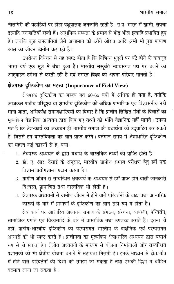 प्रस्तुत पुस्तक भारतीय समाज के विभिन्न तथ्यों को एक जगह इकट्ठा कर उनके समेकित अध्ययन को सुनिश्चित करती है। पुस्तक लेखन में अनेक विचारकों, संबंधित पुस्तकों, शोध पत्रों इत्यादि की मदद ली गयी है जिसकी वजह से पुस्तक की मौलिकता का दावा पूर्णतया नहीं किया जा सकता है, किन्तु विद्यार्थियों के लिए पुस्तक की उपयोगिता, मौलिकता से कहीं अधिक महत्त्वपूर्ण होती है। पुस्तक की भाषा को सरल और सुगम बनाने का प्रयास किया गया है, साथ ही प्रत्येक शीर्षक और उप शीर्षक का अंग्रेजी अनुवाद भी दिया गया है। प्रत्येक अध्याय के अंत में सन्दर्भ और संबंधित प्रश्नों को दिया गया है, ताकि छात्र/छात्राएँ संबंधित विषय के प्रति अच्छे से समझ बना सकें।
