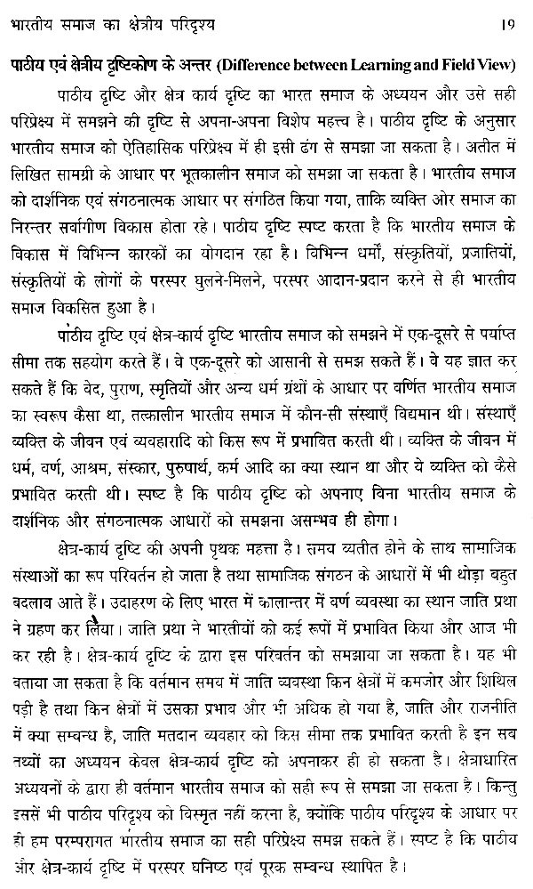 विगत एक दशक में भारतीय सामाजिक संरचना में काफी बदलाव देखने को मिले भारतीय जनसांख्यिकीय परिवर्तन के साथ समाज की विभिन्न इकाईयों, यया-परिवार, विवाह, समूह इत्यादि में भारी मात्रा में परिवर्तन दृष्टिगोचर हुए हैं। तात्कालिक समाज की संरचना और उसमें आए हुए परिवर्तनों के साथ पाठीय परिदृश्य को समझना समाजशास्त्र के विद्यार्थियों के लिए अति आवश्यक हो गया है। यह पुस्तक इसी बात को ध्यान में रखते हुए स्नातक स्तर के विद्यार्थियों के लिए लिखी गयी है।