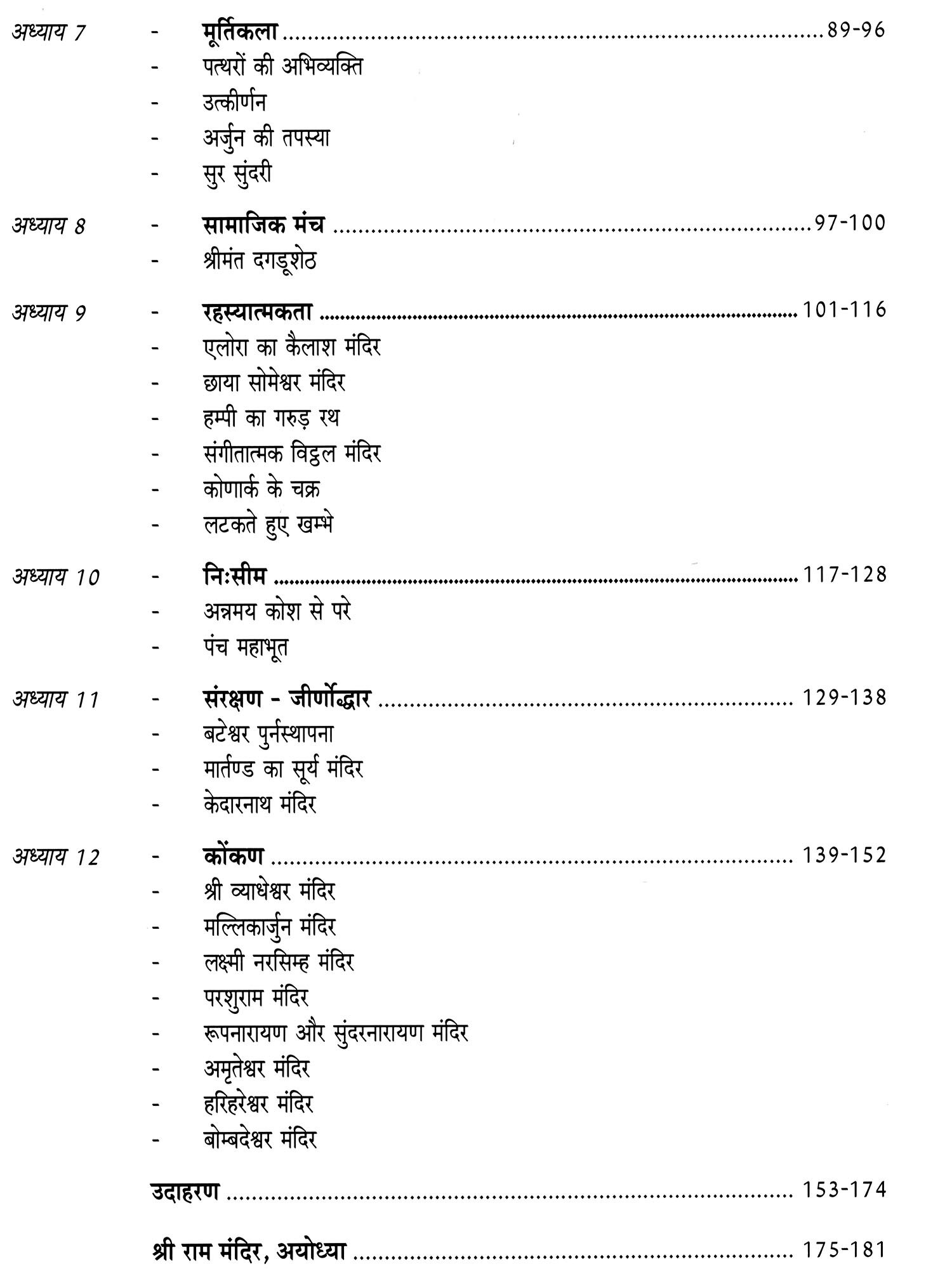 अंततः मैं अपनी व्यक्तिगत जीवन-यात्रा और सम्पूर्ण भारत भ्रमण की अवधि में मंदिरों की खोज की दीर्घ यात्रा के मार्ग में मेरे सहचर एवं सहयात्री के रूप में श्री शिरीष चक्रदेव की महत्वपूर्ण भूमिका के लिए कितनी भी सराहना करू, कम होगी। जीवन के प्रत्येक अवसर पर उनके द्वारा दिए गए साथ के प्रति में हृदय से आभारी हूँ।