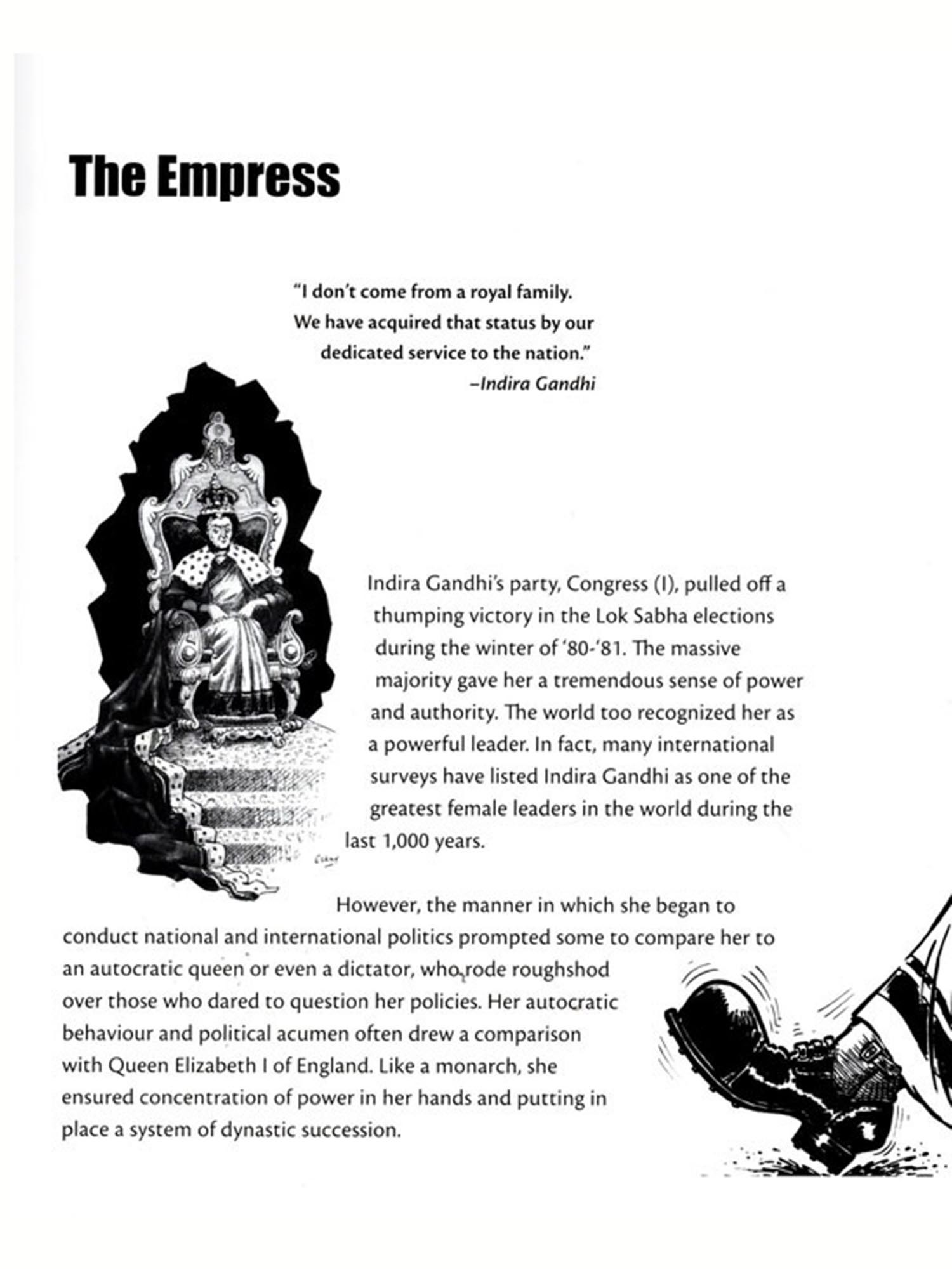 I first saw Indira Gandhi in person in 1975 during a parade on Raj Path. Her charismatic personality, regal demeanour and aristocratic bearing drew instant respect and unquestioned admiration. Here was a leader who appeared to have the personality, vision, wisdom and determination to lead the country forward and rid the rot that had poisoned its governance in the past. As an aam admi, I became her ardent fan. Many years later, after I became a freelance editorial cartoonist and began to take a critical look at what was happening in the political arena, it became apparent that something was amiss. All was not well with the way the country was being run under her leadership. The vision for India was getting blurred and the goals were becoming nebulous. There were many promises made but very few of them translated into something tangible at the grassroot level. The common man continued to have faith in her, but somehow her leadership had lost steam and a sense of purpose.