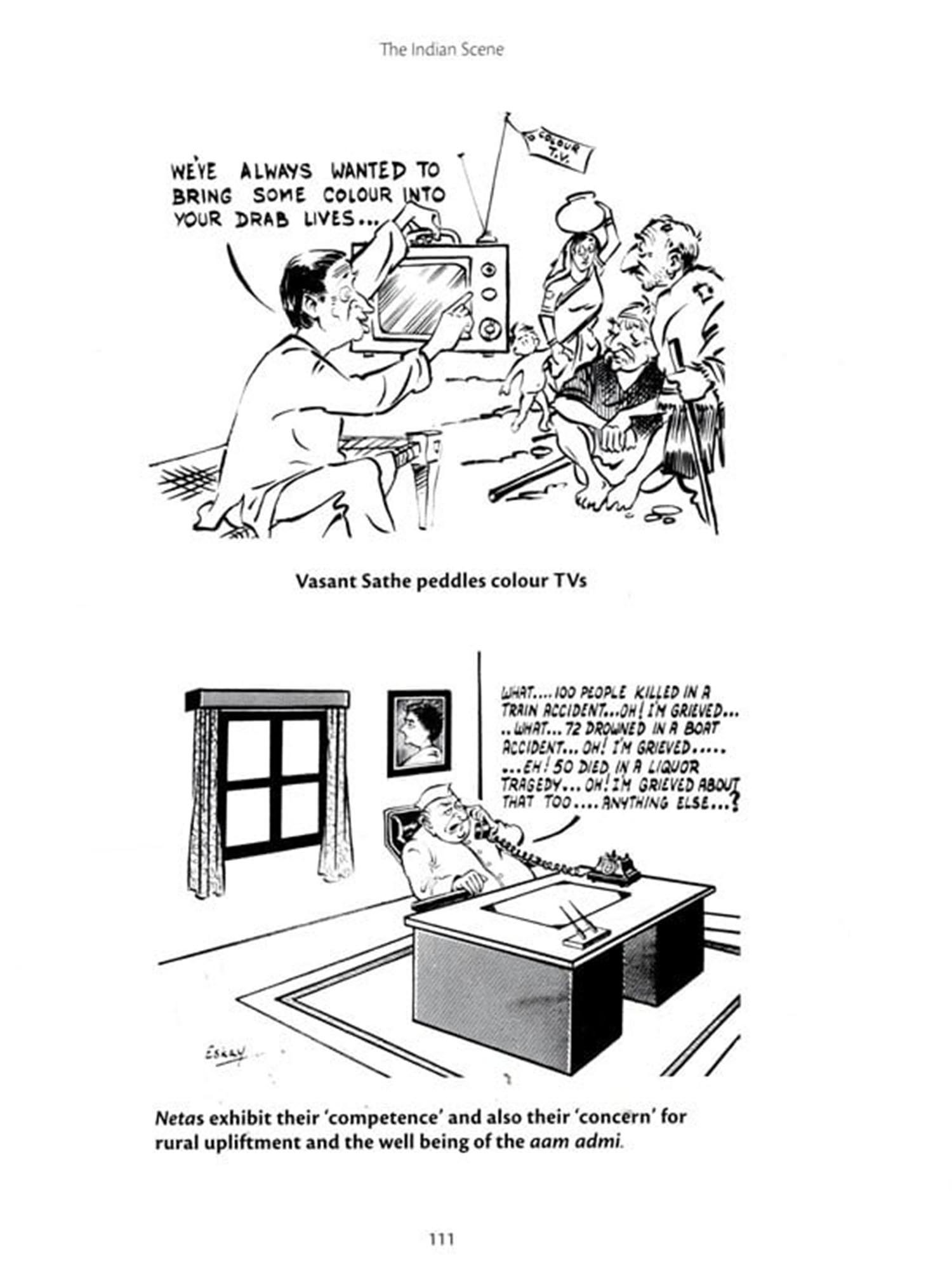 The art of cartooning is undergoing a radical change these days. Wit is being replaced with anger, imagination with urgency, wisdom with instant judgement. Eskay was one of the most loved of Bombay's freelance cartoonists in the eighties and I remember seeing his work in many newspapers and magazines. Then he packed up his bags and left for the US, taking along with him his wit and inimitable style. He taught there for two decades and bravely continued his career as a freelance cartoonist in the new environment. His work was widely published overseas but those who are familiar with his cartoons here still remember them with great fondness and admiration. He has now returned to India and to a new city, Mumbai. The landscape has changed. So have the political figures and the strategic alignments that make our public life so much more bizarre and therefore delightful. We hope he will bring back his magic to us on the pages of different newspapers and magazines all over again. And here, in the meanwhile, is a charmingly nostalgic book by him on Indira Gandhi and the last phase of her life and political career. A delightful read with lots of fresh and clever insight into her time and politics.