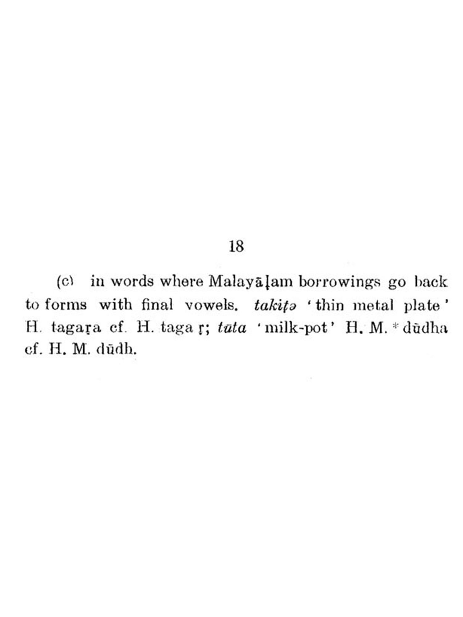 Dr. K. Godavarma (1902-1952) is one of the early scholars from India who got exposure to modern linguistics. He is the first scholar from Kerala to take Ph.D. (1933) from the London University on Malayalam language. His research guide was Prof. Turner, which helped him to attain mastery in linguistics. He is an erudite scholar well versed in Sanskrit, which paved the way for acquiring a thorough knowledge over the other Indo Aryan languages also. If two languages are in contact, whether cultivated or non-cultivated, along with cultural diffusion, the languages too will be affected. Suppose language A and language B are in contact, it is quite natural that some of the lexical items of language A will be borrowed by language B and vice-versa. The quantum of such borrowals from one language to the other may vary based on different factors such as need-filling, political power, cultural superiority, language of administration, vastness in literature, prestige of the linguistic community, medium of education etc. Even if language B has only a lesser grade in most of the above criteria, even then some of the words from language B will be adopted by the speakers of language A due to factors like need-filling motto or due to close intimacy with the people of language B etc. In short, with regard to loan words, both, languages A and B, function as donor language and recipient language.
