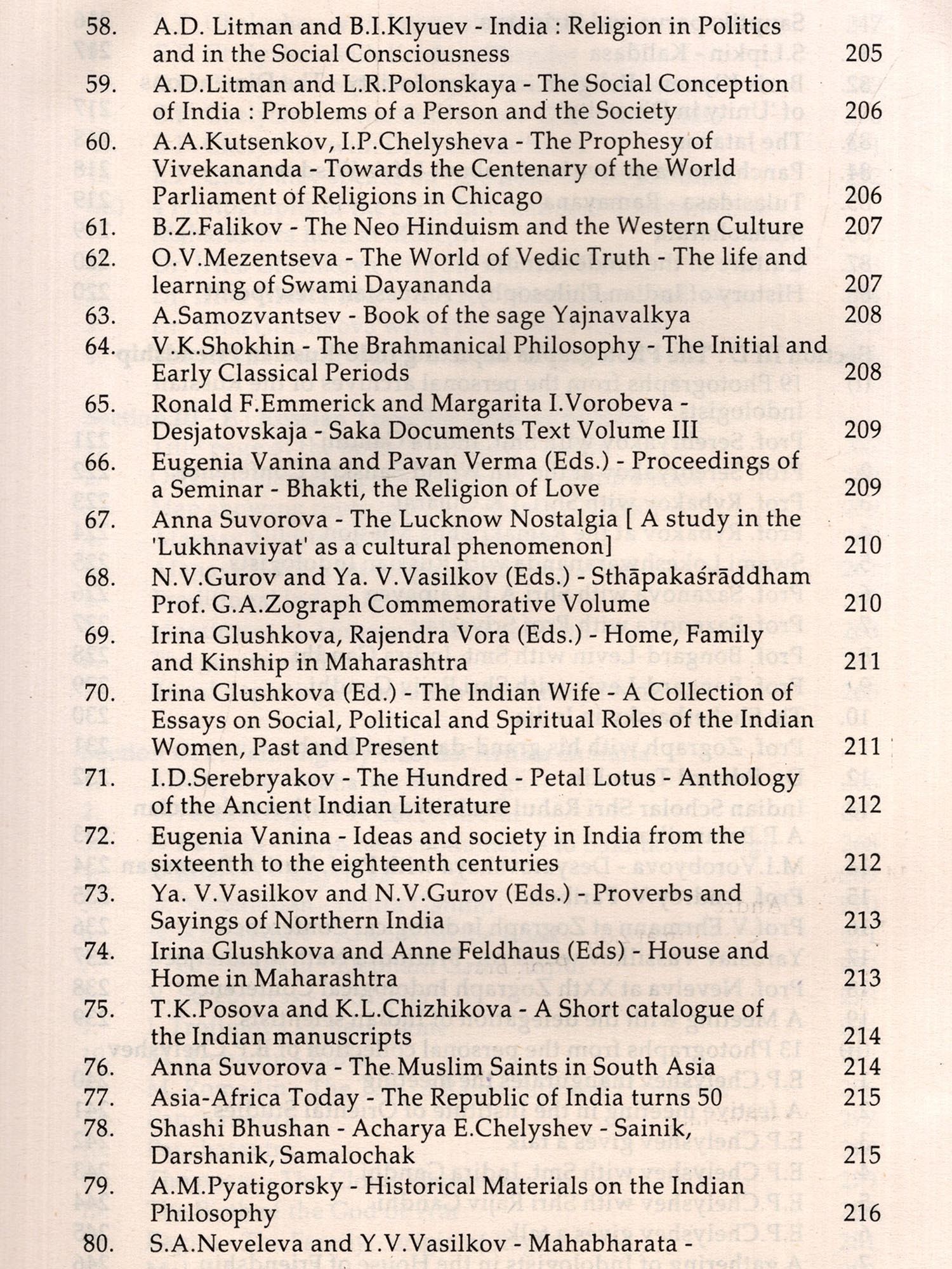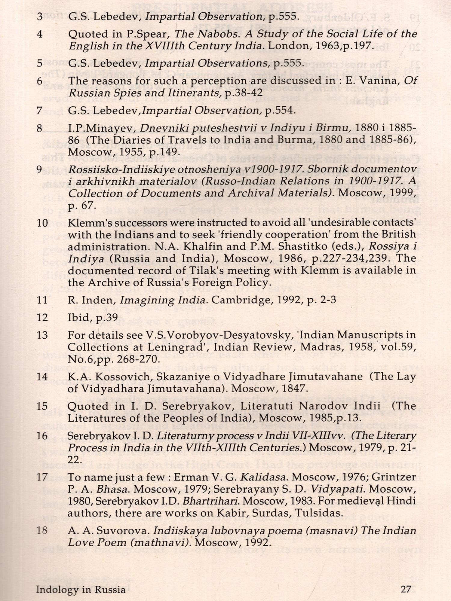 We are grateful to the Cultural Centre of Russia, Mumbai and the Centre for Indian Studies, Institute for the Oriental Studies, the Russian Academy of Sciences, Mos cow for making available the details of the Russian scholars and their works.