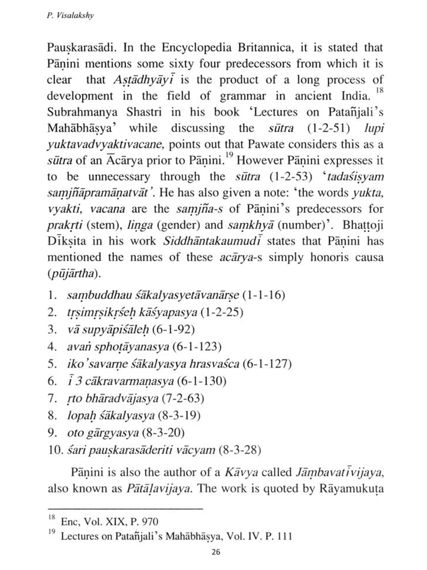 In this work, after presenting a clear picture of Paninian and post-Paninian systems of Sanskrit grammar, Prof. Visalakshy elaborately discusses the influence of Candravyakarana on Sarasvatikanthabharana and the salient features of Prakriyasarvasva of Melputtur Narayana Bhattatiri and Sarasvatikanthabharana of Bhoja (Chps 3 & 4). A detailed description of the contributions of King Bhoja to Technical Literature was also given in (Chp. 5).