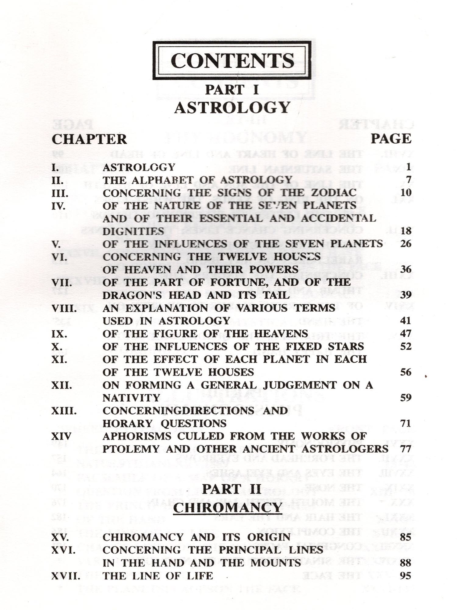 Chiromancy and Physiognomy are both based on astrology and are, therefore, quite in place as the second and third parts of a work treating of the influence of the stars. Many of the modern writers on Chiromancy seem disposed to deny its affinity to astrology, with which it is however, inseparably connected.