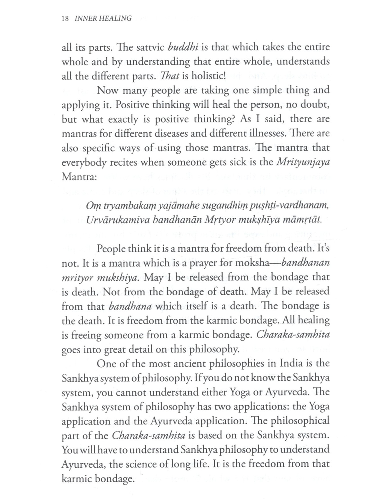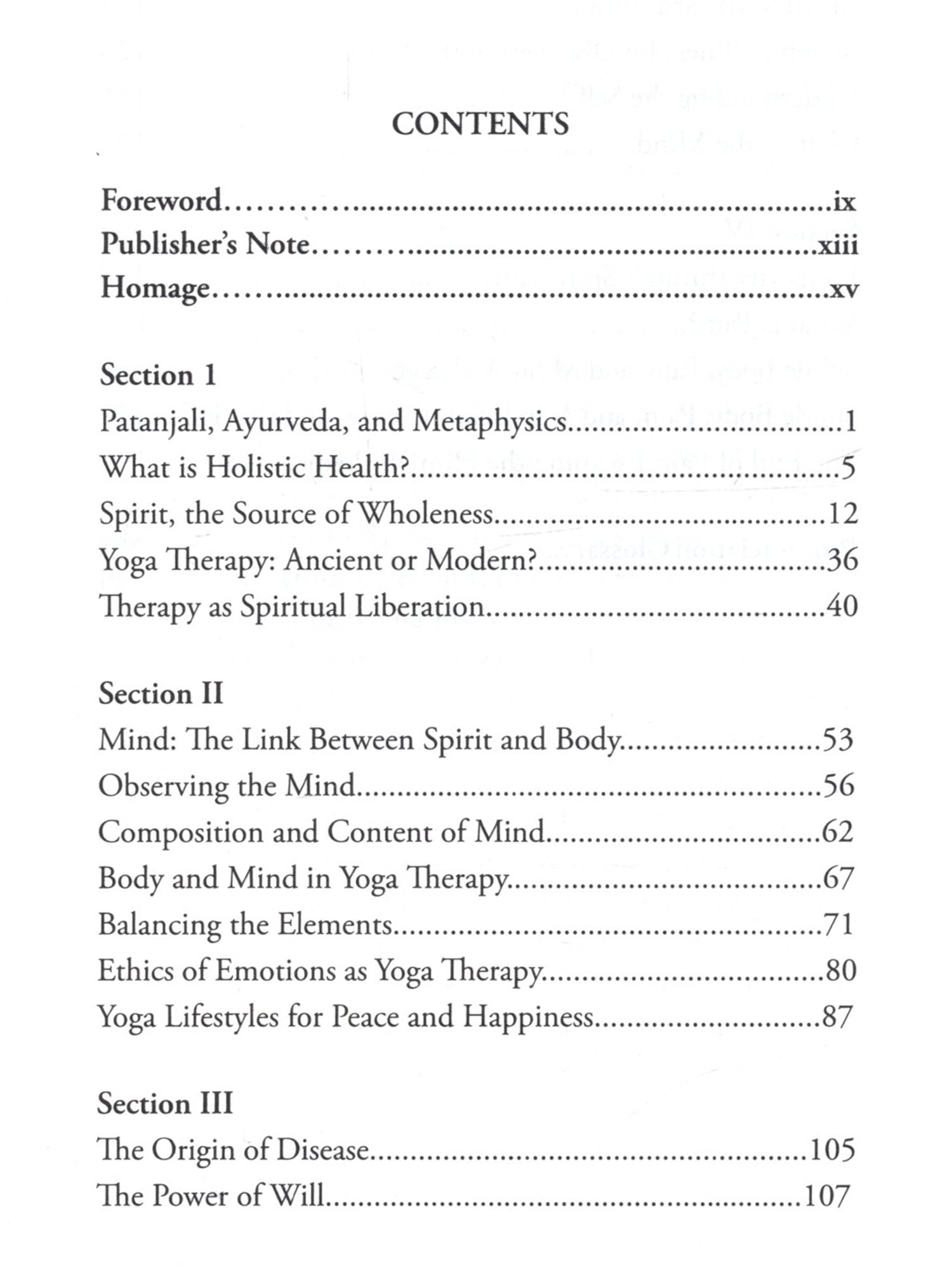 INNER HEALING "All sickness, physical or mental is a lack of balance." Various aspects of the body, mind, senses and spirit are seamlesly interwoven into a composite whole offering a unique perspective and a definite guidance for well-being. Yoga therapy is not a new concept; however, certain practices have been lost through the ages. Understanding the origin of disease, and our attitude towards illness are essential to the healing process. The emphasis is on a spiritual approach to illness and liberation. The science of spiritual liberation and therapy are inter-related. The ultimate in therapy is spiritual liberation. The sheer range and depth of the content drawn from personal experience and exceptional understanding of the underpinning philosophy on yoga therapy and related practices are distinctive features of this extraordinary book.