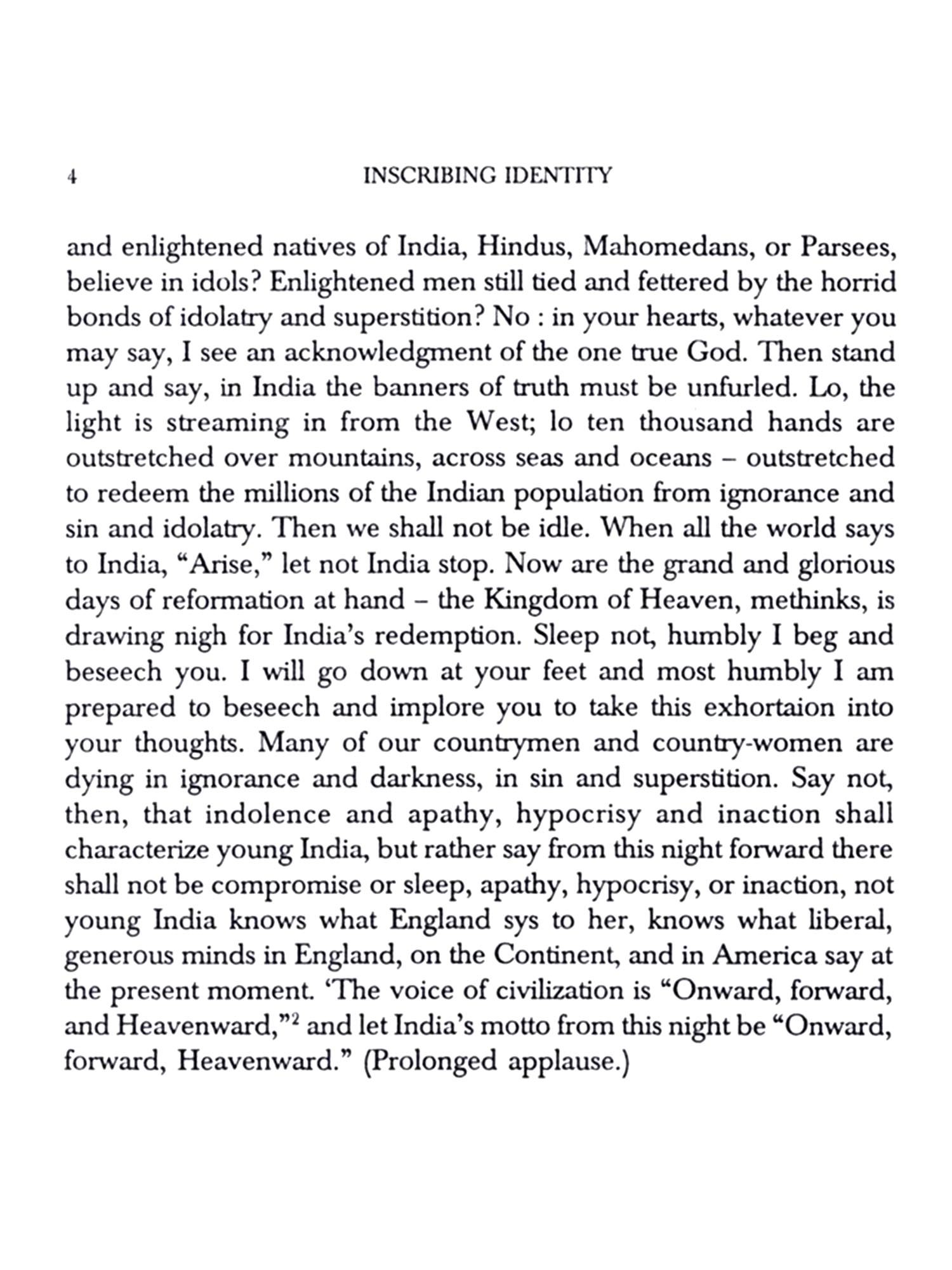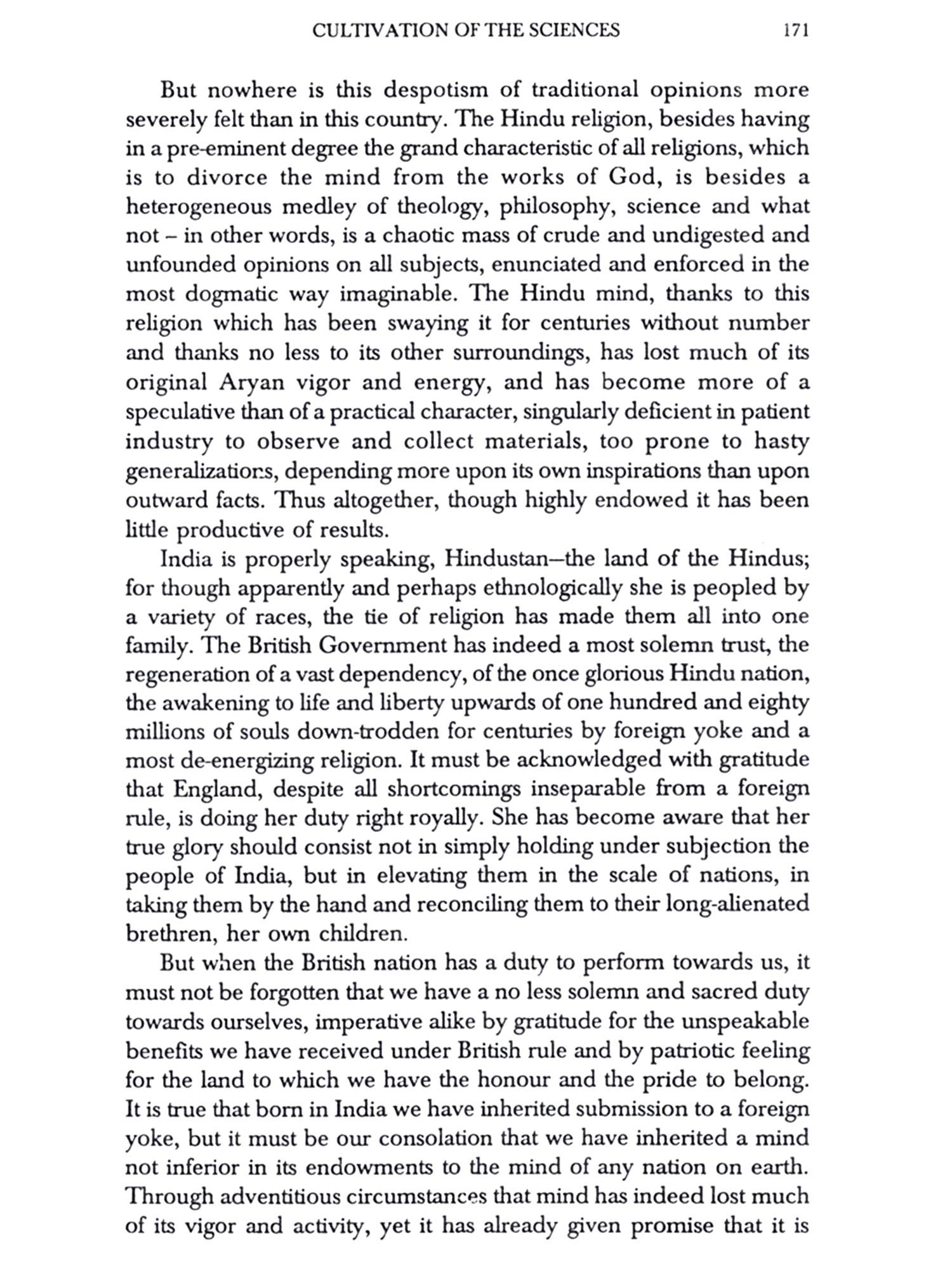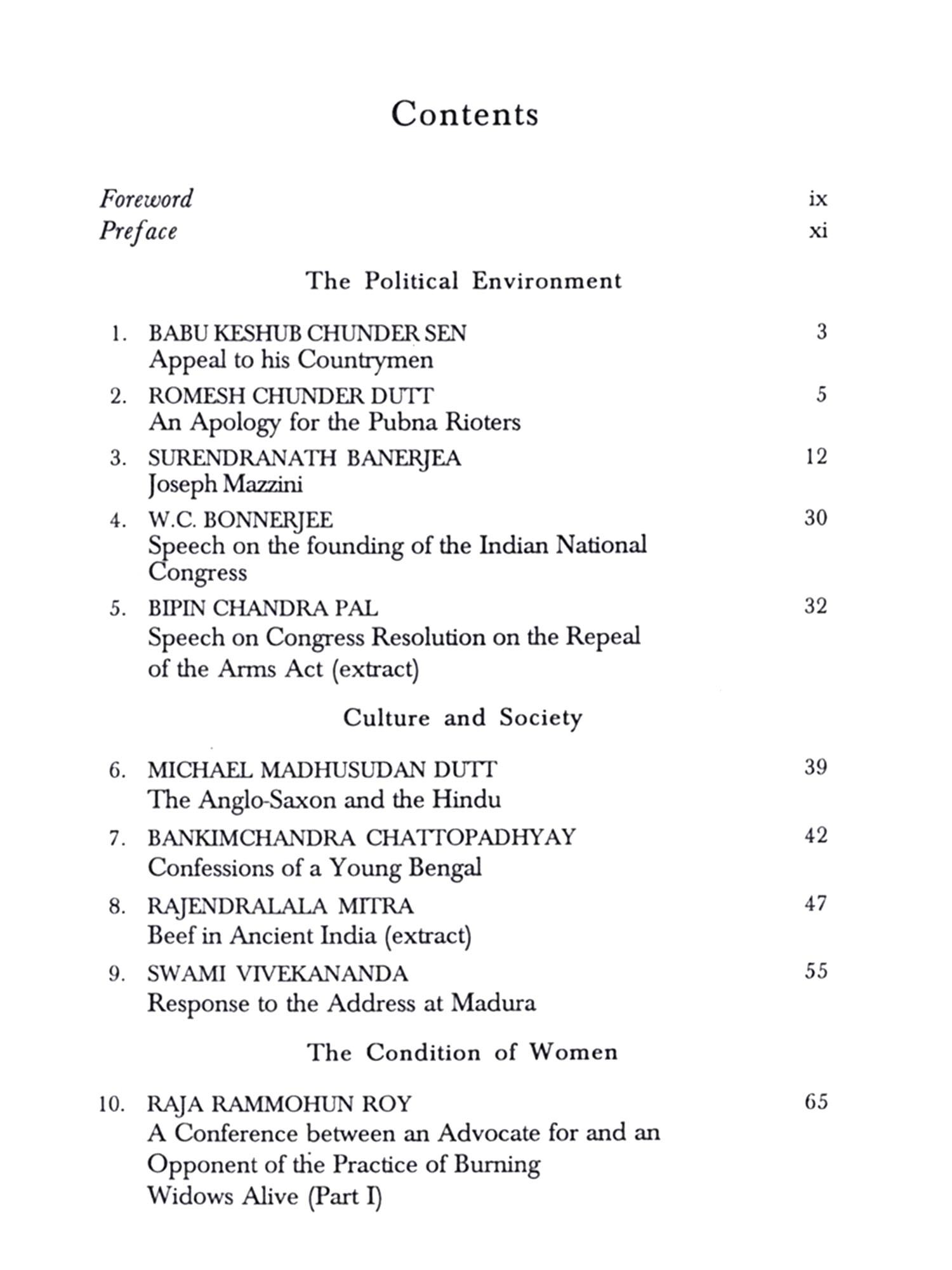 All pieces reprinted here were originally written in English, none are in translation, and perhaps one of the things to note besides the incisive thought is the ease and power in the use of the English language - the bombastic 'babu English' of Hurree Babu in Kipling's Kim is exposed for the myth that it always was. The introductory notes to the annotations to each essay do the work of setting the piece and its arguments in context. One cannot add any significant insights to the exhaustive research already in place on nineteenth century Bengal in a brief Preface - the essays themselves will serve as the best guides to the many currents and cross-currents playing across Bengal - the scene of what was undoubtedly one of the major periods and locations of the advancement of human thought in the history of India's culture.