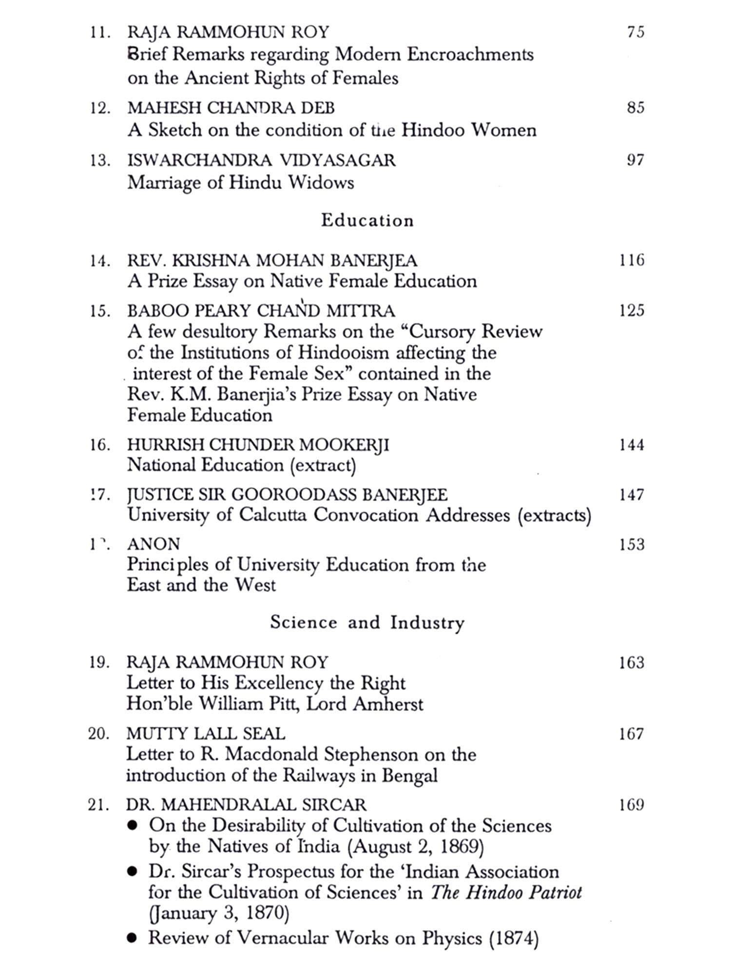 Several of our greatest historians whose names are far too well known to be enumerated have dealt with that glorious chapter in the social, cultural and intellectual history of Bengal in the nineteenth century, generally known as the 'Bengal Renaissance. This was the period when the quick-silver Bengali mind engaged most productively in the creative endeavour of blending the best in the native traditions with the best in the new fields of knowledge filtering in from the West. The litany of great names whose works are reproduced in the present volume actually constitutes only a small percentage of the great minds illuminating the firmament of Bengal in that century. Quite apart from the better known areas of politics, society, culture and education, it has been the endeavour in this collection to focus one other major development of those times in Bengal, namely science and industry.
