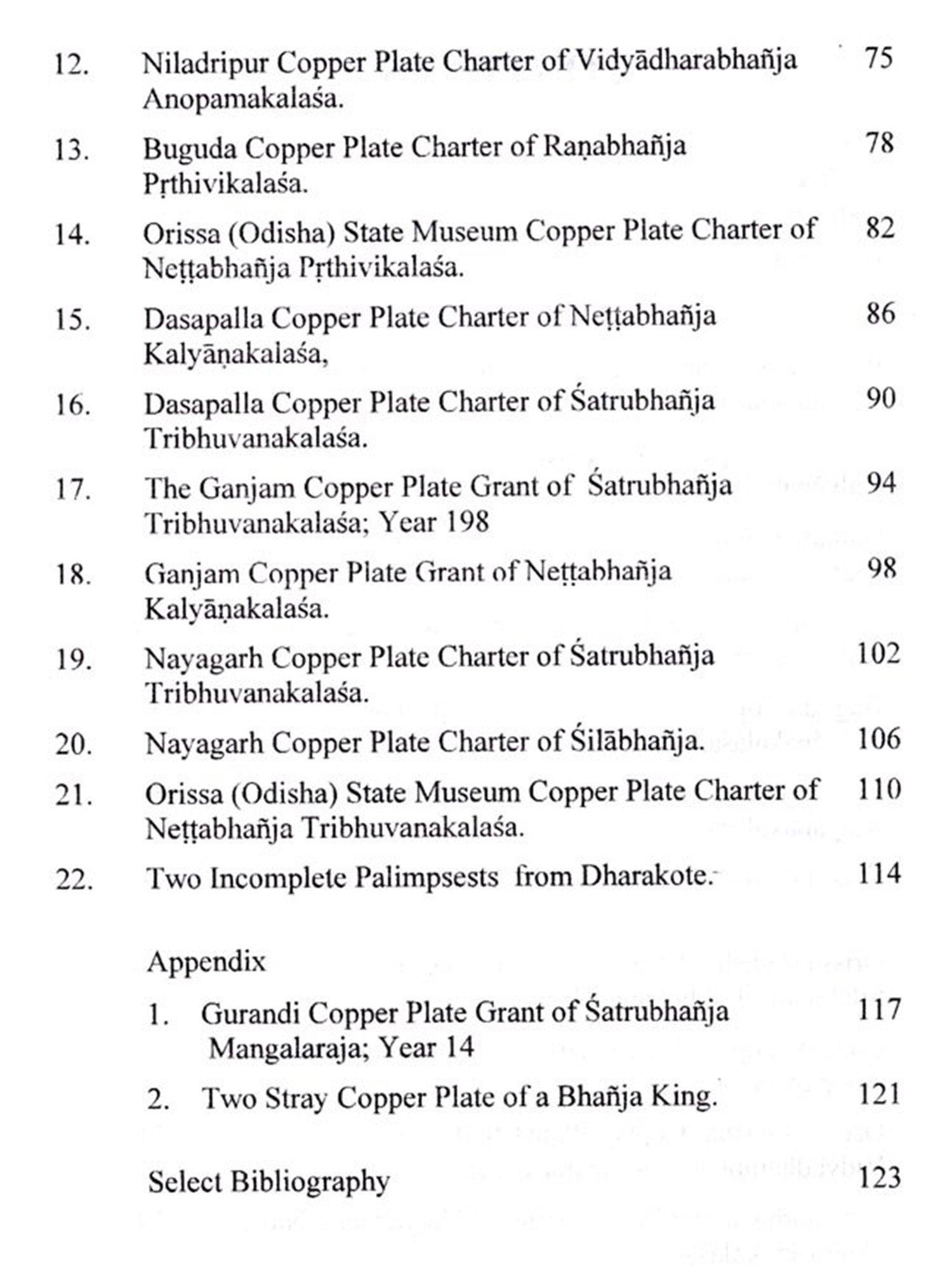 The present work forms the second volume of the "Inscriptions of Odisha (Inscriptions of Bhanjas of Khinjalimandala). All the copper plates grants of the dynasty were issued from Dhrtipura in Baud district. After their defeat in the hands of Somavariisis they were forced to shift their headquarter from Dhrtipora of Baud district to Vañjulavaka of Ganjam district. The Bhanjasa of Vañjulvaka ruled over Ganjam, Nayagarh, and part of Khurda district of Odisha They ruled as a semi independent status under the Bhaumakaras and Somavamsis.