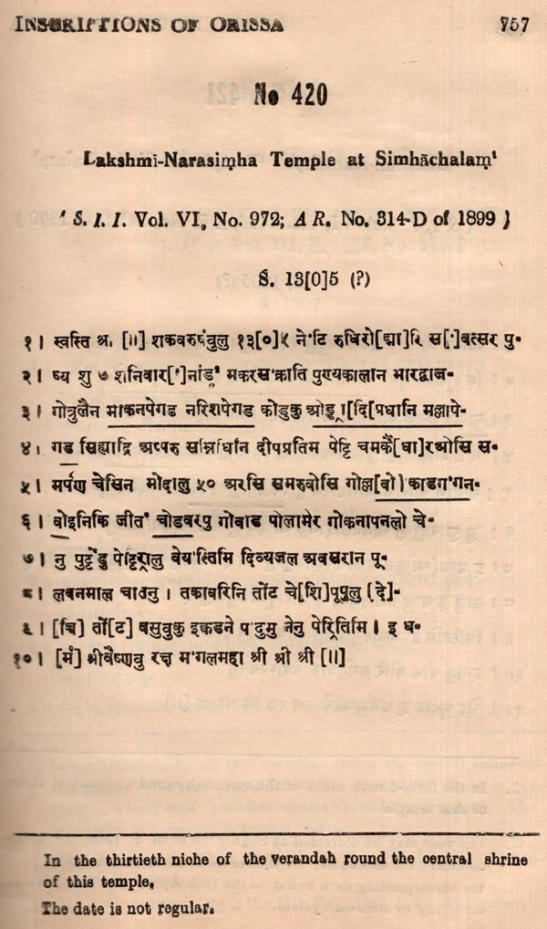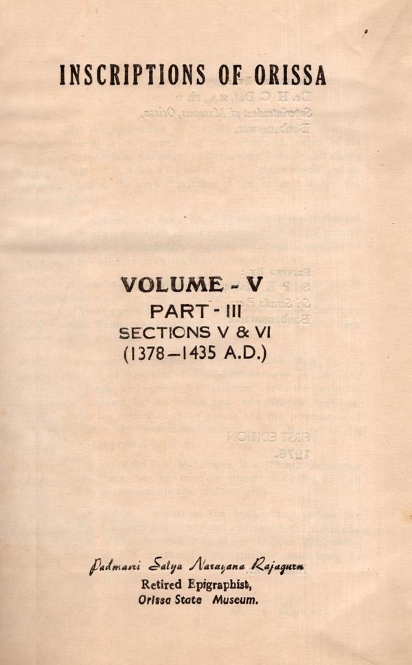 Inscriptions of Orissa: Volume- V, Part- III, Sections V & VI (1378-1435 A.D., An Old and Rare Book)