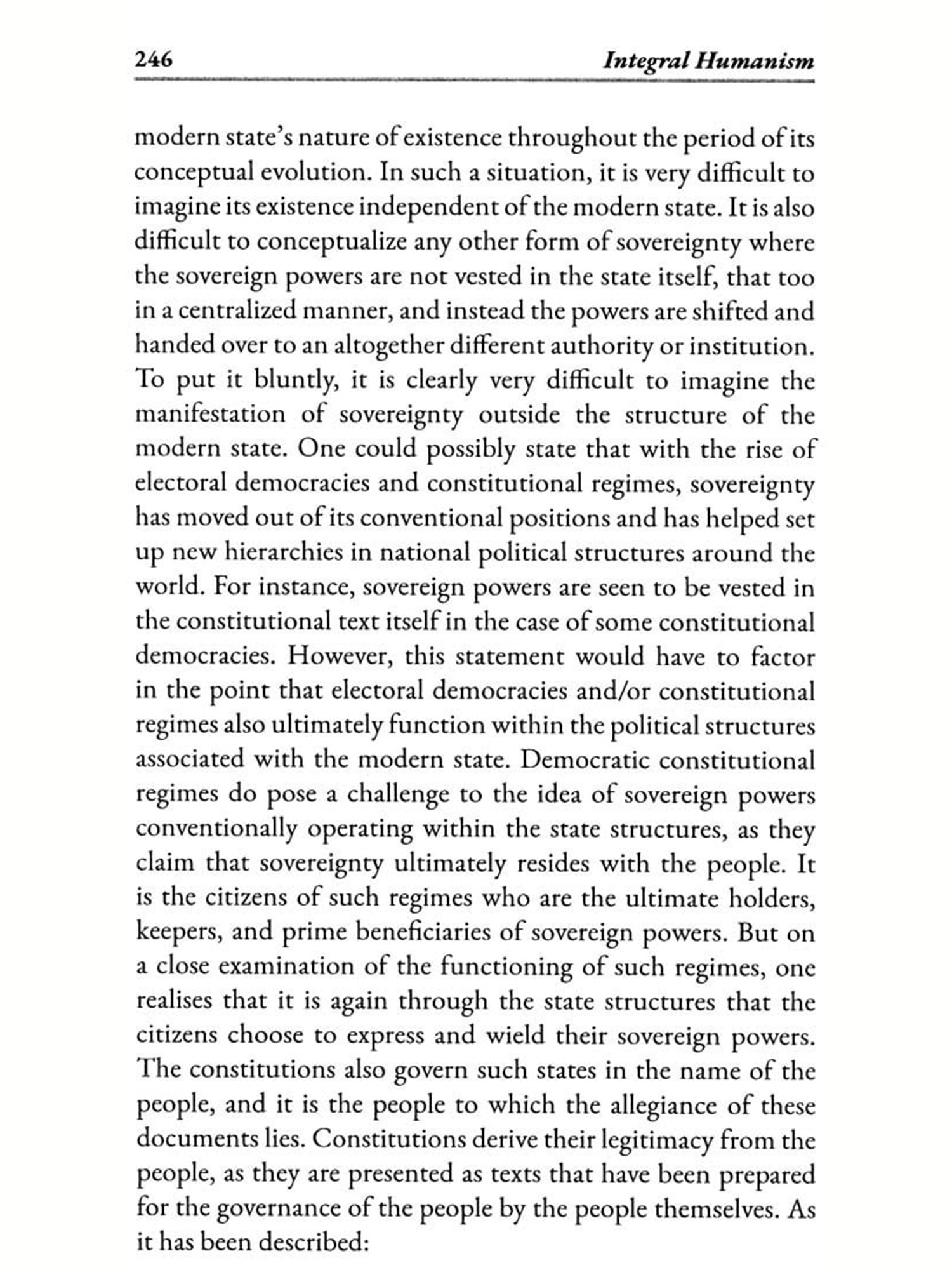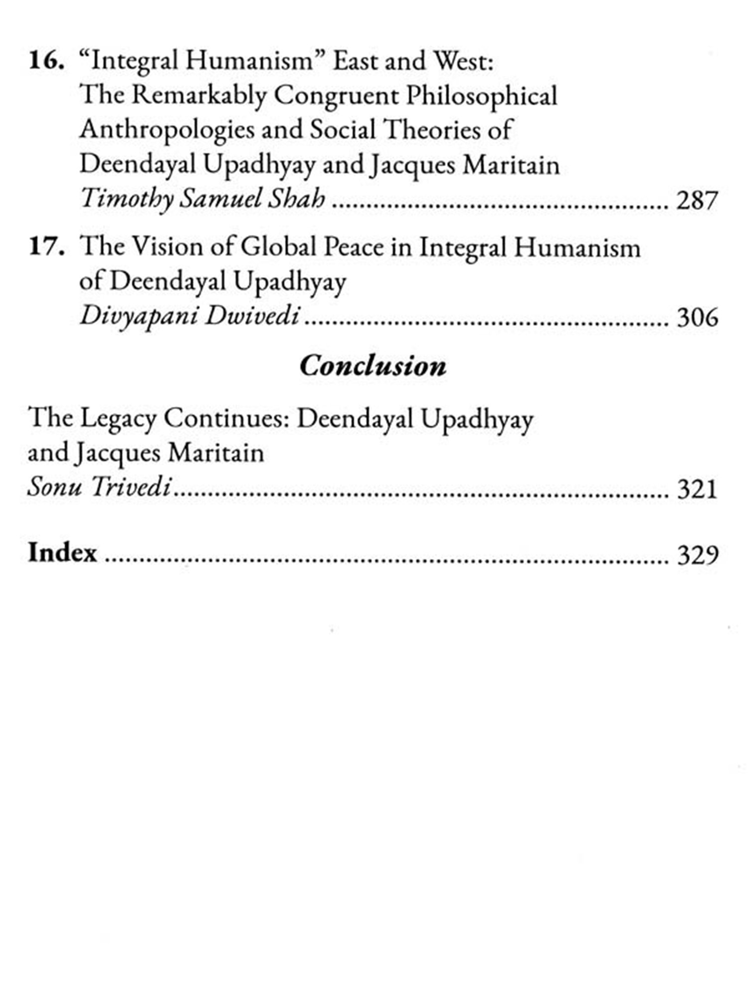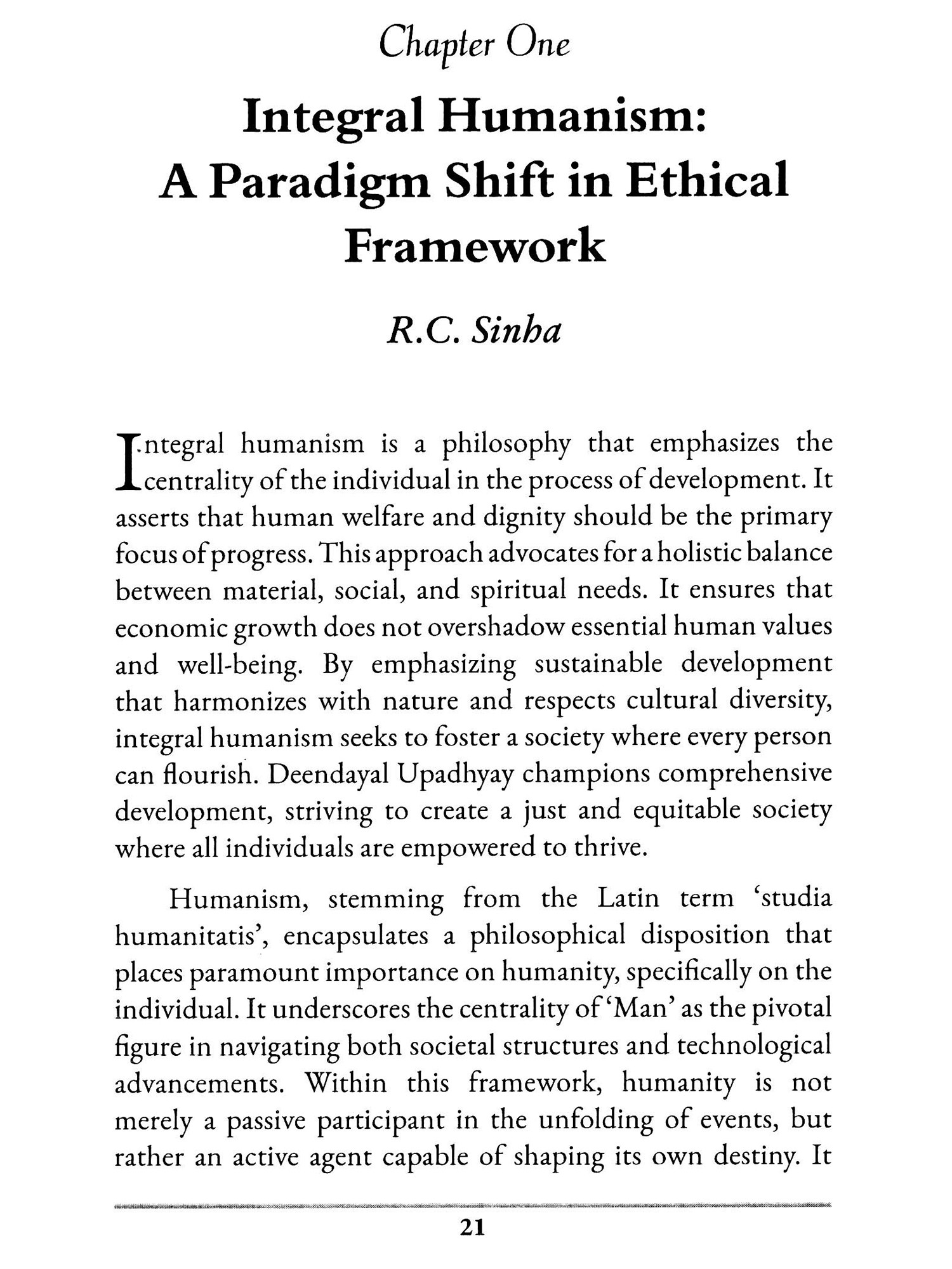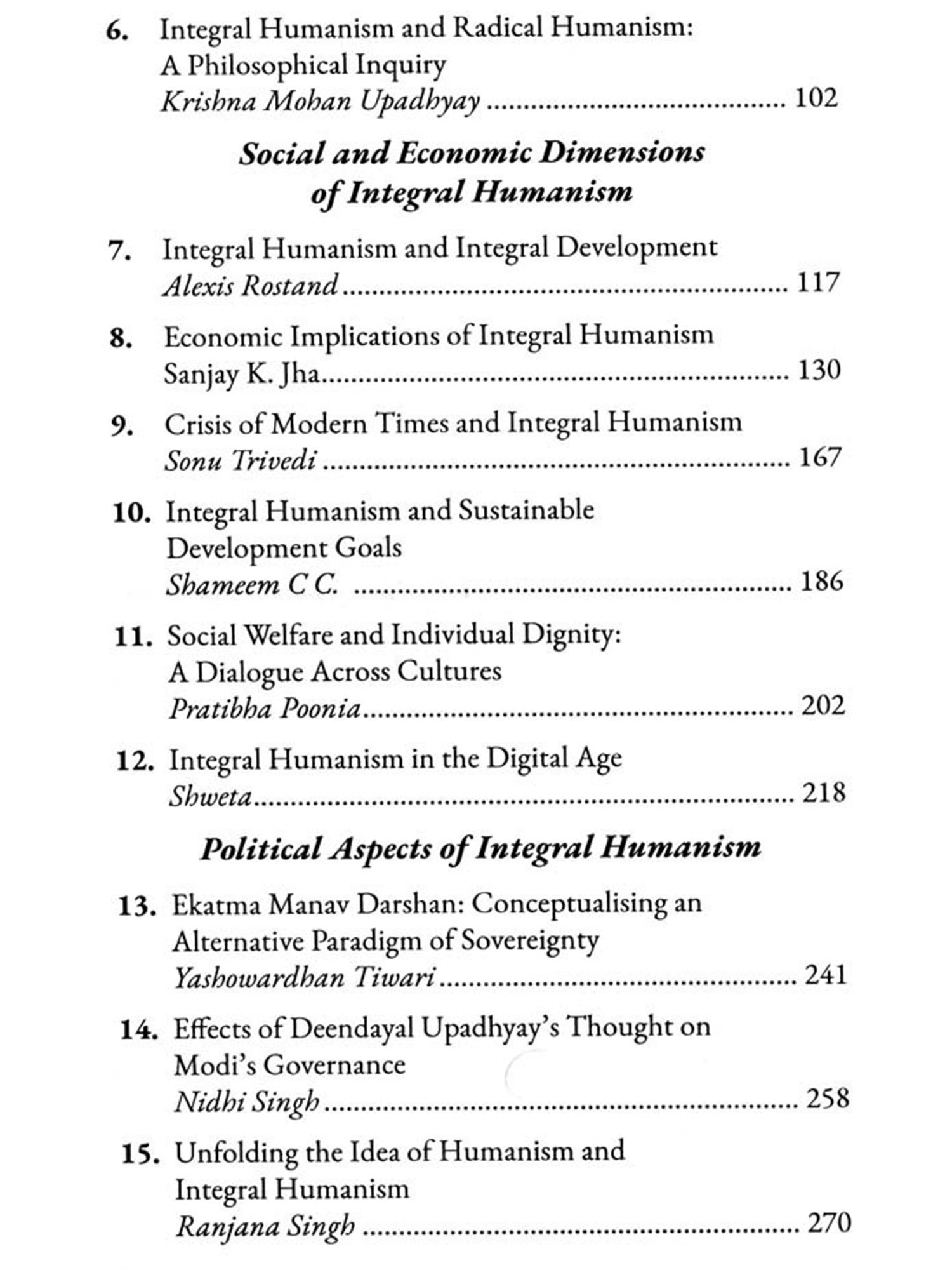 Integral Humanism, as á philosophical and political concept, finds expression in the works of thinkers from diverse cultural and ideological backgrounds. This book aims to compare the integral humanism articulated by Deendayal Upadhyay, a prominent figure in Indian political thought, and, Jacques Maritain, a French Catholic philosopher. Despite the contextual and cultural differences between their perspectives, both thinkers share a commitment to the holistic development of human beings within the framework of a fair and balanced society. The comparative analysis of Integral Humanism as articulated by Upadhyay and Maritain reveals the universality of certain principles despite the cultural and religious diversity of their contexts offering valuable insights into the promotion of human dignity, ethical governance, and the integration of material and spiritual dimensions in the pursuit of a just social order. In this book, the contributors provide diverse perspective and offer deep insight into the ideas of Deendayal Upadhyay and Jacques Maritain who based on their shared values continue to inspire and guide humanity towards a more integral and harmonious future.