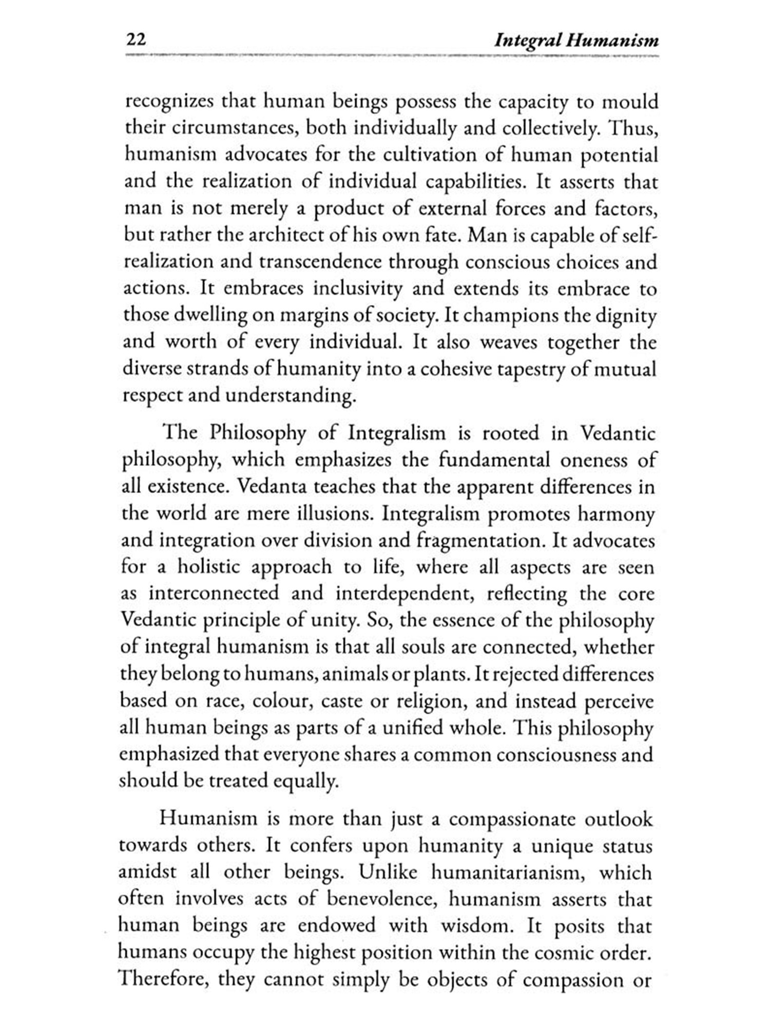 This concept of Integral Humanism, as articulated by Te Deendayal Upadhyay and Jacques Maritain, represents a profound exploration of the human condition, emphasising the integration of material and spiritual dimensions within a just and harmonious society. Despite emerging from vastly different cultural, political, and historical contexts, their philosophies converge in their commitment to holistic human development, ethical governance, and the universal principles of dignity and harmony.