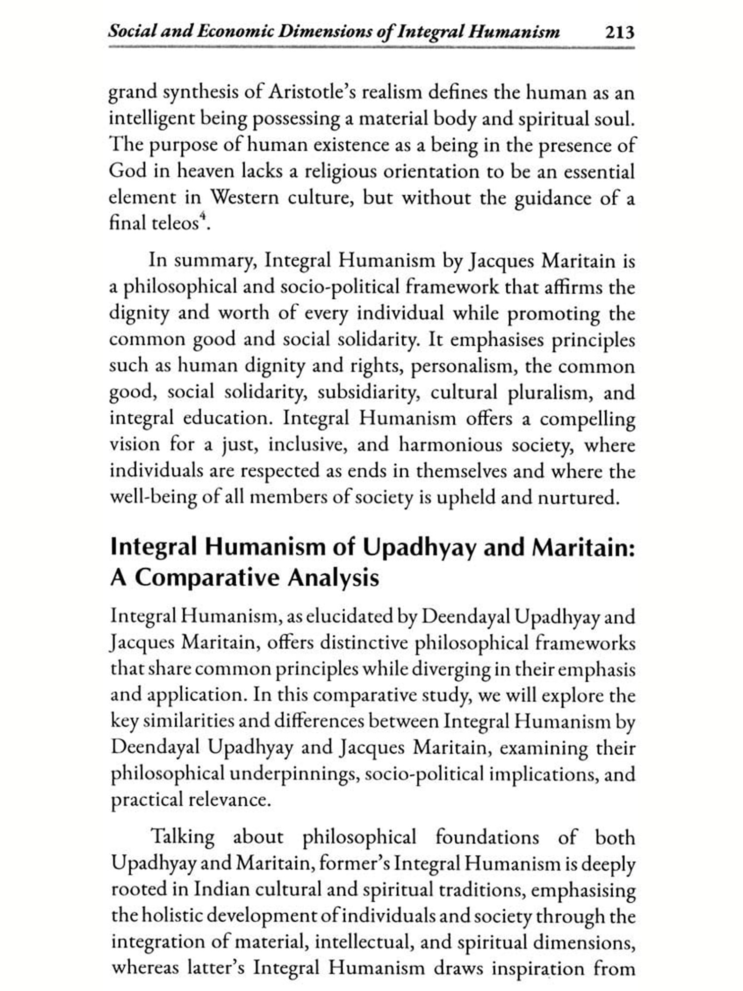 Integral Humanism (Perspectives of Deendayal Upadhyay & Jacques Maritain)