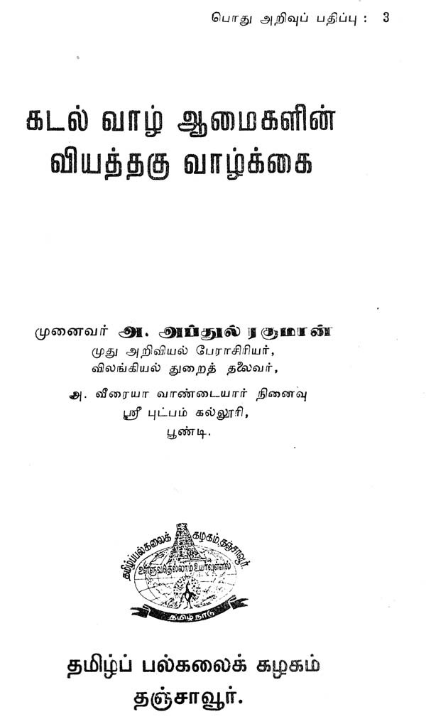 கடல் வாழ் ஆமைகளின் வியத்தகு வாழ்க்கை:Interesting Life of Sea Tortoises (An Old and Rare Book) (Tamil)