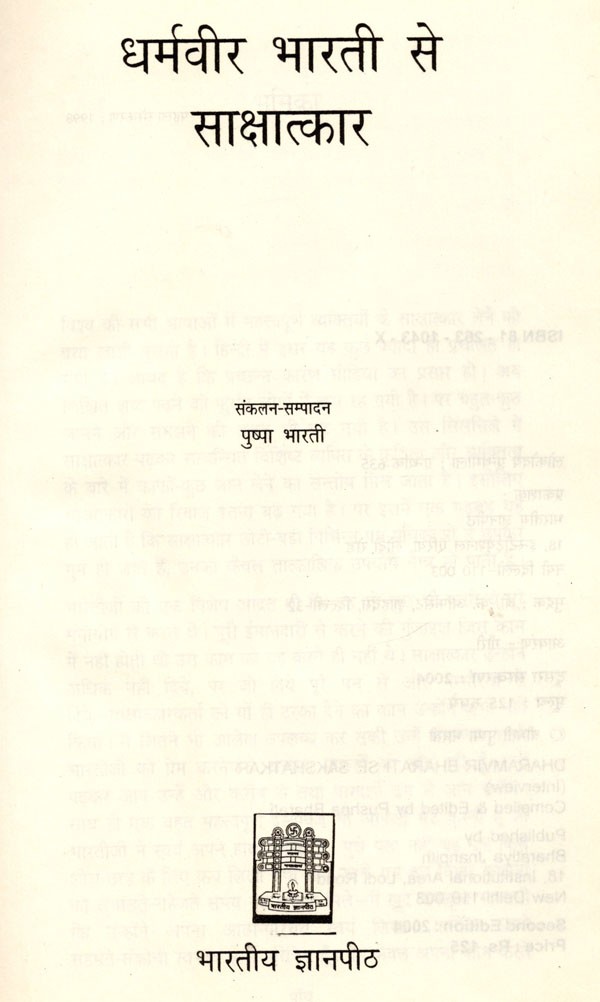 साहित्य में सम्मान और लोकप्रियता के शिखर पर प्रतिष्ठित और नयी हिन्दी पत्रकारिता के महत्त्वपूर्ण स्तम्भ डॉ. धर्मवीर भारती से किये गये साक्षात्कारों की यह विशिष्ट कृति है 'धर्मवीर भारती से साक्षात्कार'। इसमें अपने समय के एक शीर्षस्थ कवि, चिन्तक, साहित्यकार और पत्रकार धर्मवीर भारती के बहुरंगी और बहुआयामी साक्षात्कार हैं; जिनके माध्यम से उनके अन्तरंग यथार्थ, उनका प्रखर चिन्तन और उनकी सर्जनात्मक वैचारिकता मुखर हैं। कह सकते हैं, यह पुस्तक भारती जी के जीवन और कर्म का जीवन्त दस्तावेज है। इसमें अपनी खट्टी-मीठी बहुत-सी यादों, बहुत सी अनुभूतियों और राग-विराग, जीवन-संघर्ष तथा समस्याओं से जुड़े अनेक बेलौस प्रश्नों के बेबाक उत्तर भारती जी ने दिये हैं। 'धर्मवीर भारती से साक्षात्कार' में एक ओर जहाँ भारती जी की सांस्कृतिक मूल्यों, जीवन और समाज की जटिलताओं, मौजूदा विकास और वैचारिक रुग्णता को देखने-समझने की दृष्टि उजागर है; वहीं इसमें उनके इतिहास-बोध और संस्कार, आध्यात्मिक संघर्ष और द्वन्द्व की विकलता तथा साहित्य-परिदृश्य के सम्बन्ध में उनके विचारों से भी साक्षात्कार होता है। हिन्दी साहित्य के सुधी पाठकों के लिए एक अनिवार्य पुस्तक ।