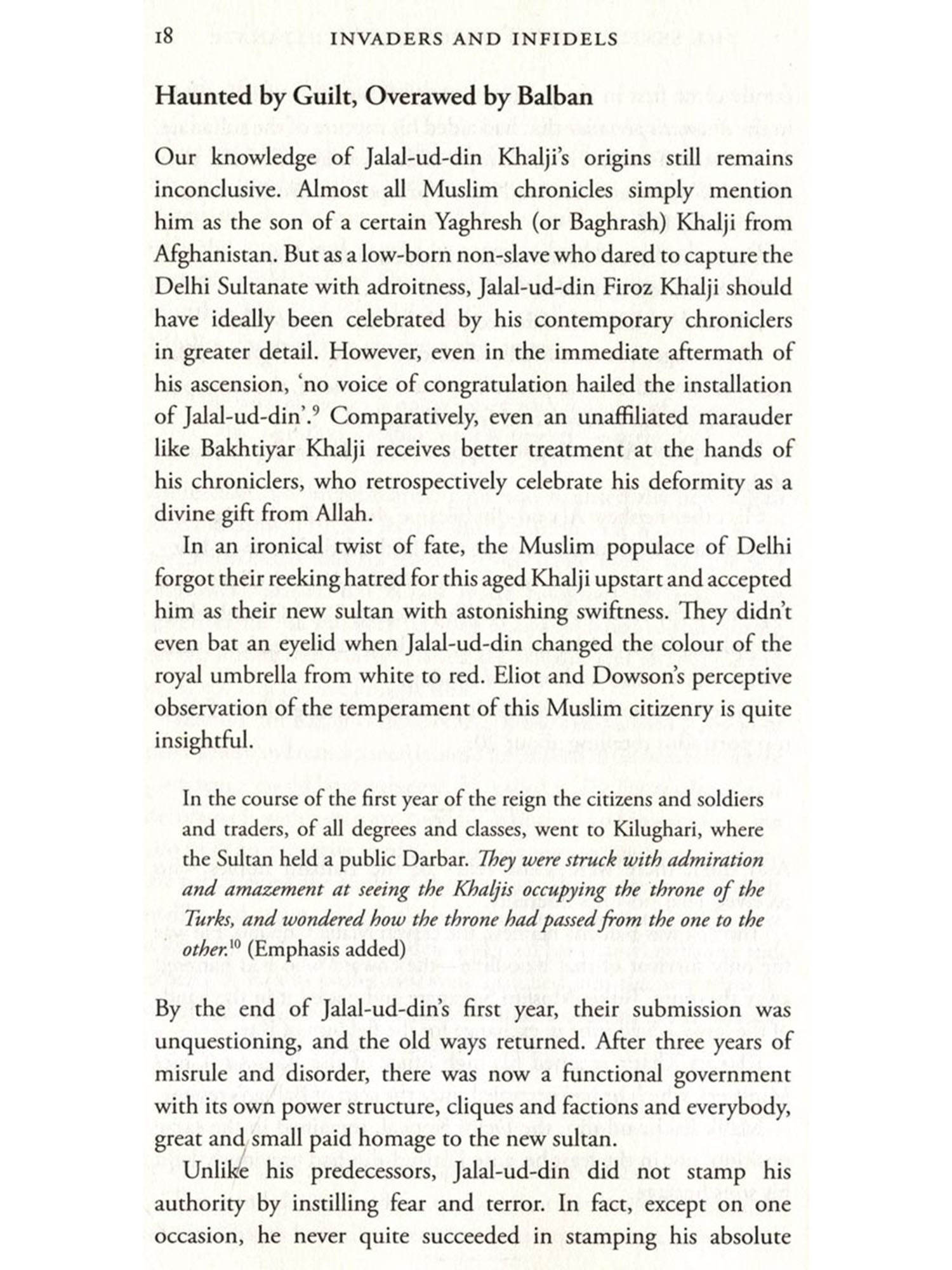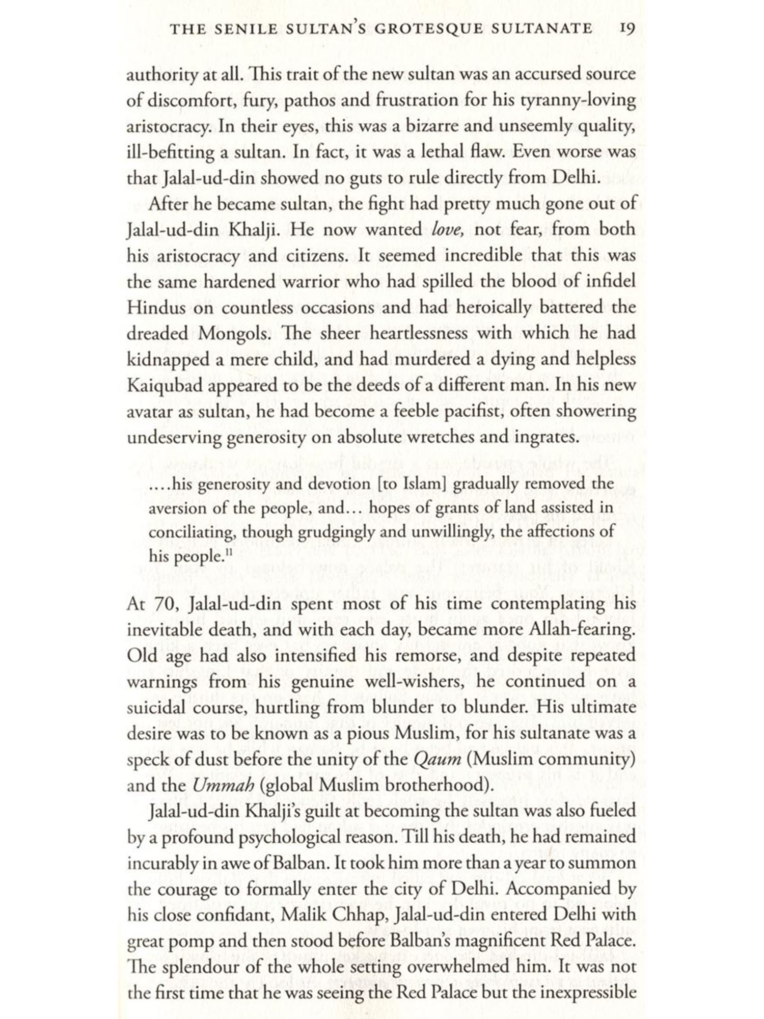 The Sultan was ambling his way towards death in one fit T of helpless fury at a time. In all probability, the sultan merely suspected that the illness that had seized him this time would pass, too. He was, after all, the Shah, the Upholder of the Deen, The Only True Faith in the world, the sultan who had known no defeat, who had 'conquered the east and protect[ed] the west', who had been honoured by none less than the mighty Chief of the Abbasids, and more importantly, he was the One who had 'destroyed the country of the sun-worshippers'. Wherever his sword had been raised, such far-flung, powerful kingdoms like those at Kara², Ujjain, Ranthambhor, Chittorgarh, Deogiri³, Dhur Samundar and Madura met the same fate as that of the 'garden of Behar', whose soil was 'dyed with blood as red as a tulip', and everywhere the ravaging sultan went, the 'Hindus, in alarm, descended into the earth like ants."