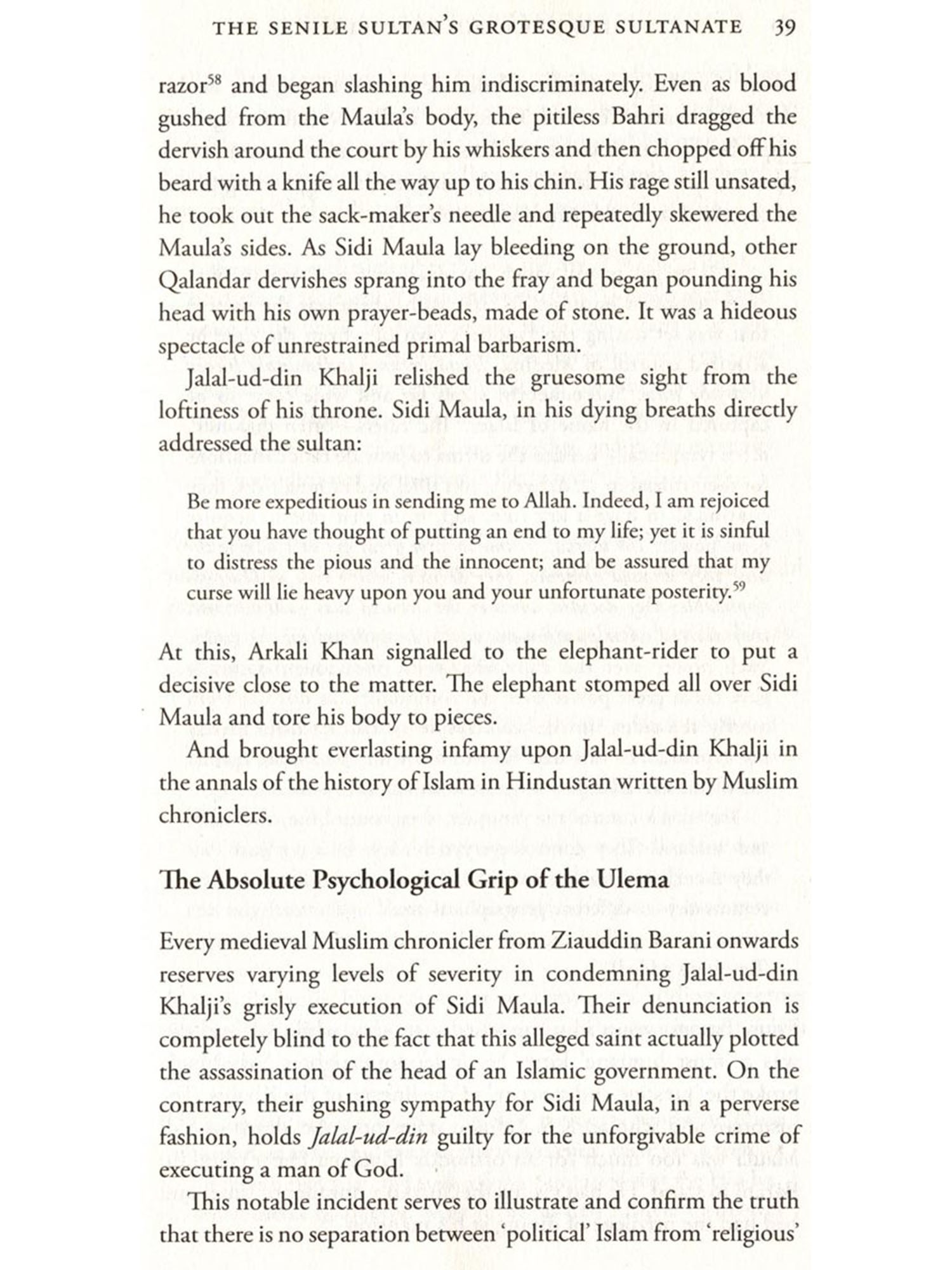 For succor he turned, as he had always done, to his most loyal Vazir Hazardinari, constantly whining to him about the ingratitude of his queen and his sons and everybody he had nourished and made powerful and prosperous. A sultan whose entire life had been characterised and driven by an insatiable ambition, to attain which he had committed unprecedented savagery backed by religious sanction, had now become a fatalist. And a feeble puppet in the hands of this same Vazir Hazardinari who patiently ministered his every intimate need in that sprawling palace and fort at Siri.