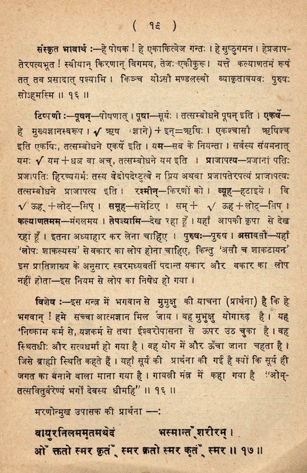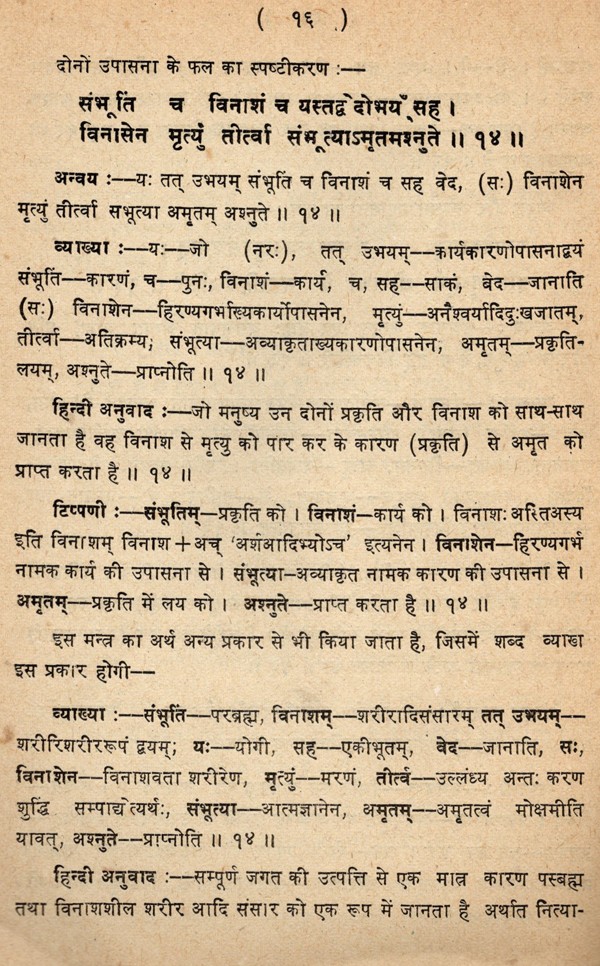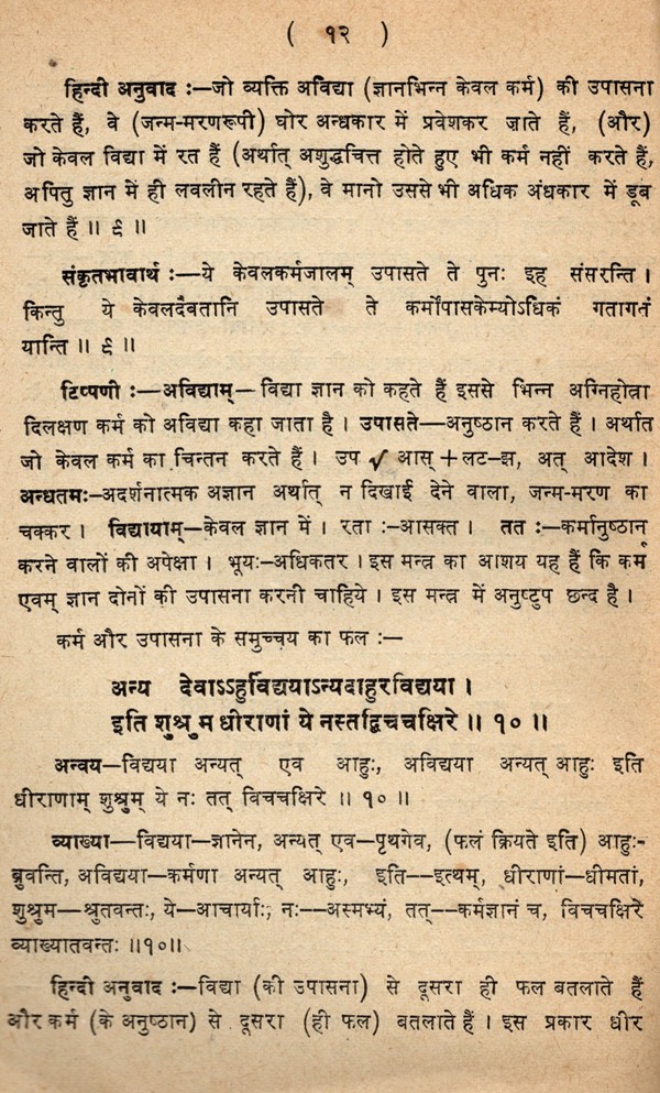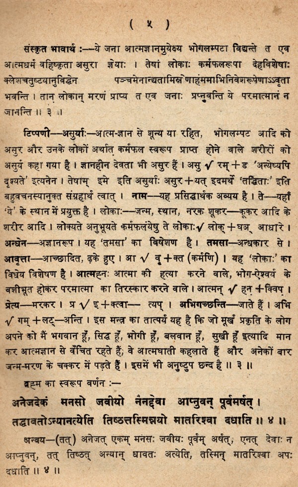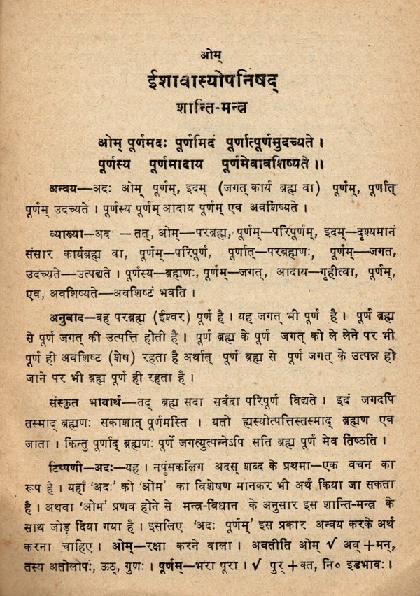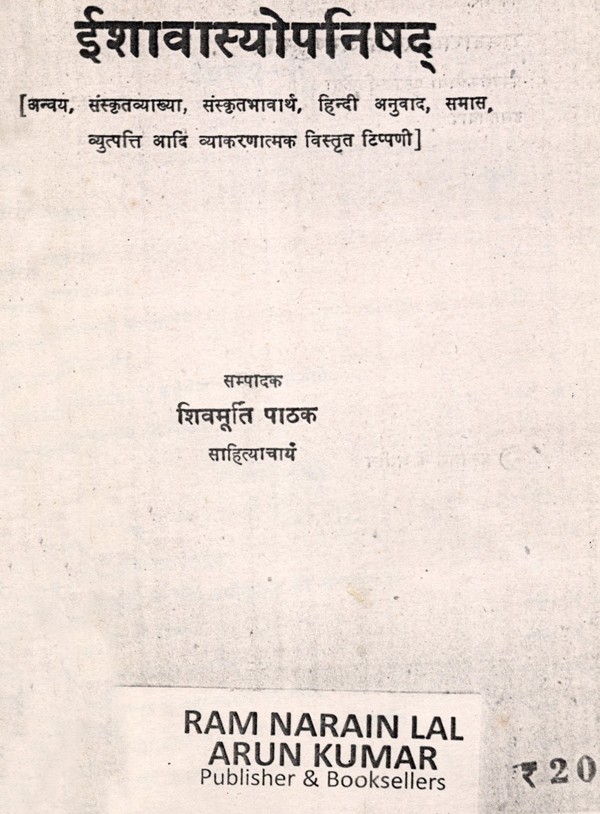 ईशावास्योपनिषद्- Ishavasyopanisad- Detailed Grammatical Commentary on Conjunction, Sanskrit Explanation, Sanskrit Meaning, Hindi Translation, Compound, Derivation etc (An Old and Rare Book Only 1 Available)