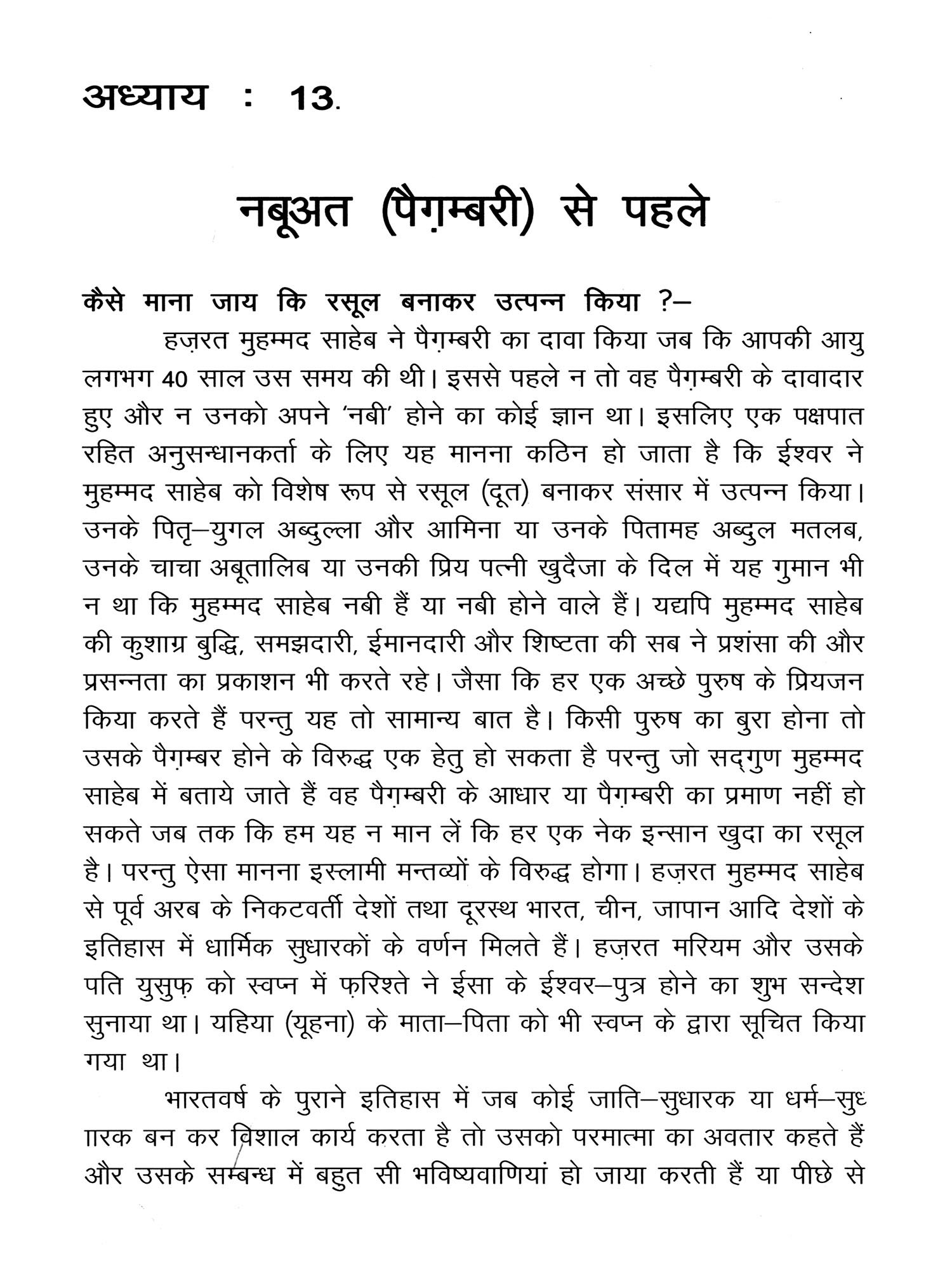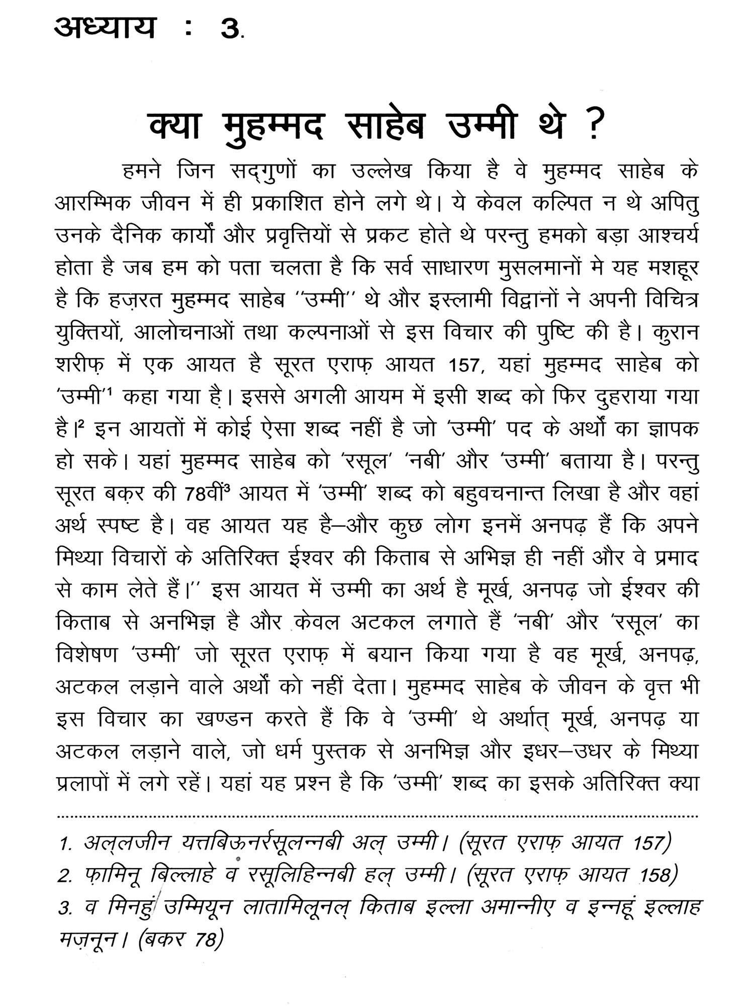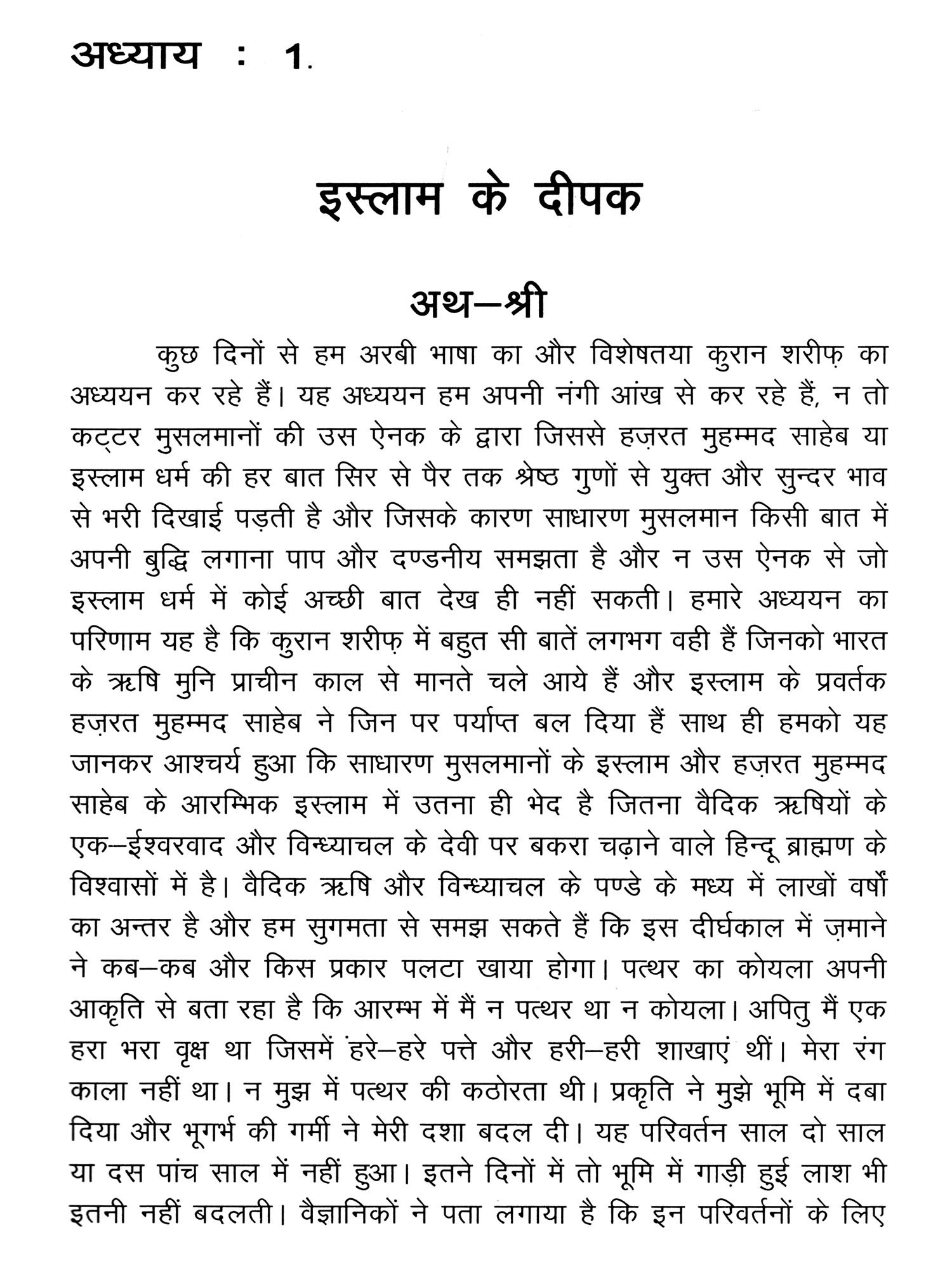 पंडित जी की पुस्तक की विशेषता यह है कि आपने इस पुस्तक के लेखन में इतनी मीठी भाषा का प्रयोग किया है कि इस्लाम को मानने वाले अनुयायी भी इस पुस्तक को पढ़ने के बाद उनकी प्रशंसा किये बिना न रह सके। गंभीर से गंभीर विषय को इतने स्पष्ट और साधारण शब्दों में पंडित जी ने प्रकाशित किया है। इस पुस्तक के अनेक संस्करण पहले कला प्रेस प्रयाग, अमर स्वामी प्रकाशन गाजियाबाद, गंगाप्रसाद उपाध्याय प्रकाशन मंदिर अबोहर, गोविंदराम हासानन्द दिल्ली से प्रकाशित हो चुके हैं। प्रस्तुत संस्करण में कुरान की पाद टिप्पणियां गोविंदराम हासानन्द दिल्ली से प्रकाशित संस्करण से ली गई हैं। हम उनके आभारी है।
