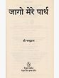 सतत चिन्तन में निमग्न तथा मानव मात्र के समग्र कल्याण के लिए प्रयत्नशील विद्वान संन्यासी श्री चन्द्रप्रभ सरस वाणी द्वारा जिस ज्ञान-धारा का प्रवाह करते हैं, उसकी जीवन्त प्रस्तुति है जागो मेरे पार्थ। यह गीता पर दिए गए उनके अठारह आध्यात्मिक प्रवचनों का अनूठा संकलन है, जो भारतीय जीवन-दृष्टि को रेखांकित करता है। इस ग्रन्थ को पढ़कर हरेक के मन में विजय का विश्वास जागता है और हर कोई पुरुषार्थ की भावना से भर उठता है।