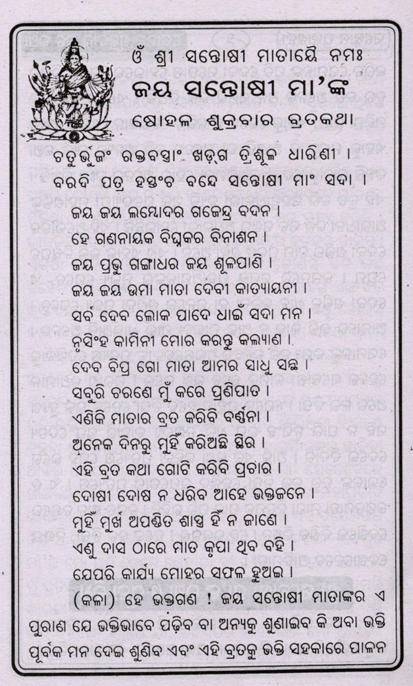 ଶୁକ୍ରବାର ବ୍ରତ କଥା ସନ୍ତୋଷୀ ମାର୍ତ୍ତାର ଅପୂର୍ବ ଗାଥା- Friday's Fast (Mythological Story of Santoshi Mata (Oriya)