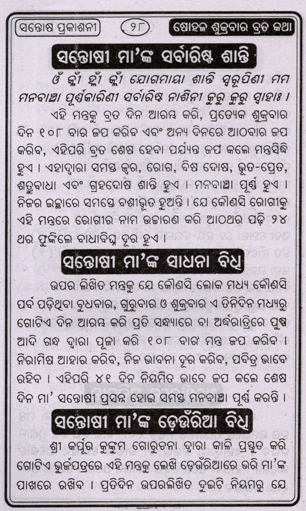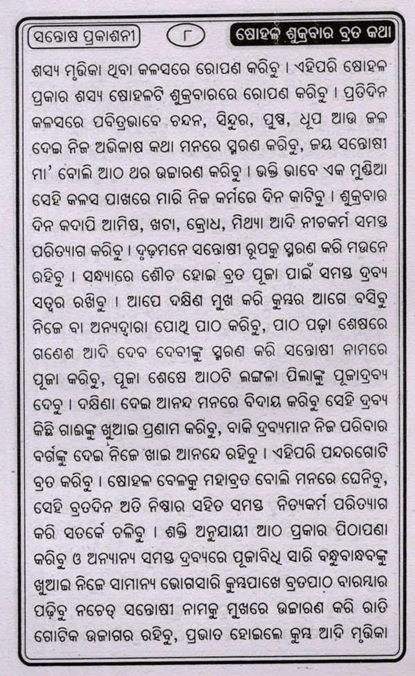 ସନ୍ତୋଷୀ ମାତାଙ୍କ ଷୋଳ ଶୁକ୍ରବାର ବ୍ରତ: Santoshi Matanka Solla Sukrabara Brata (Oriya)