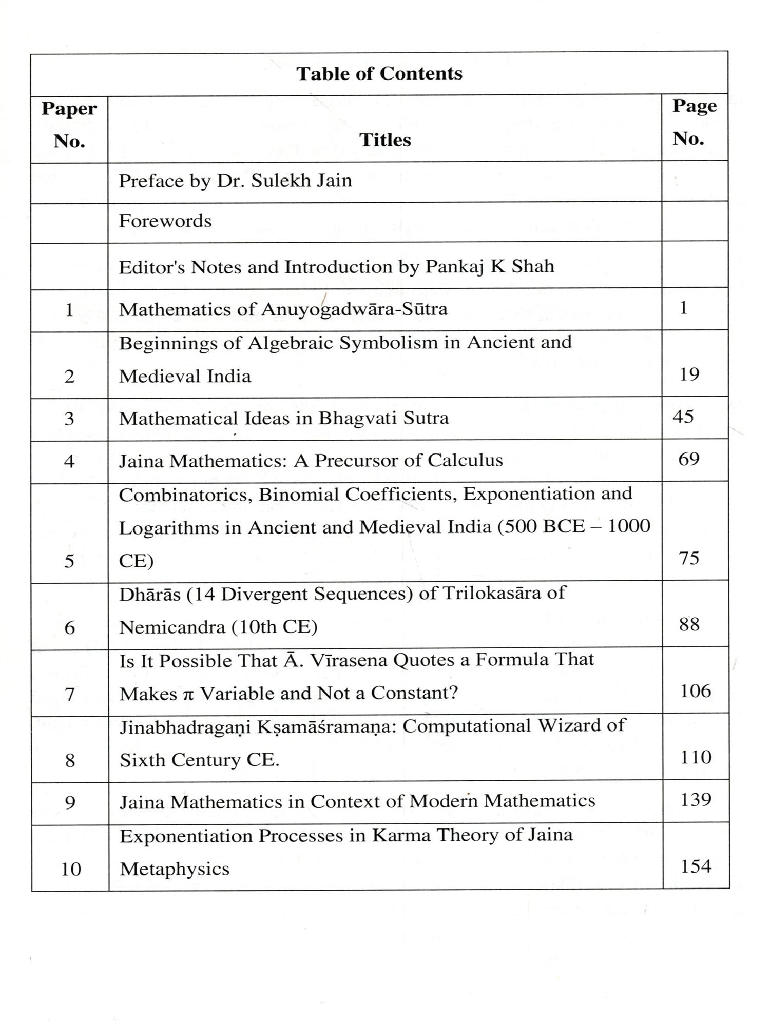 This book is a tribute to the extraordinary contributions of Ratanakumar Shah, whose work has illuminated the rich mathematical heritage of Jainism. We are deeply grateful to Pankaj K. Shah and his team for their dedication to this important project, which has successfully brought these remarkable insights into the public eye.