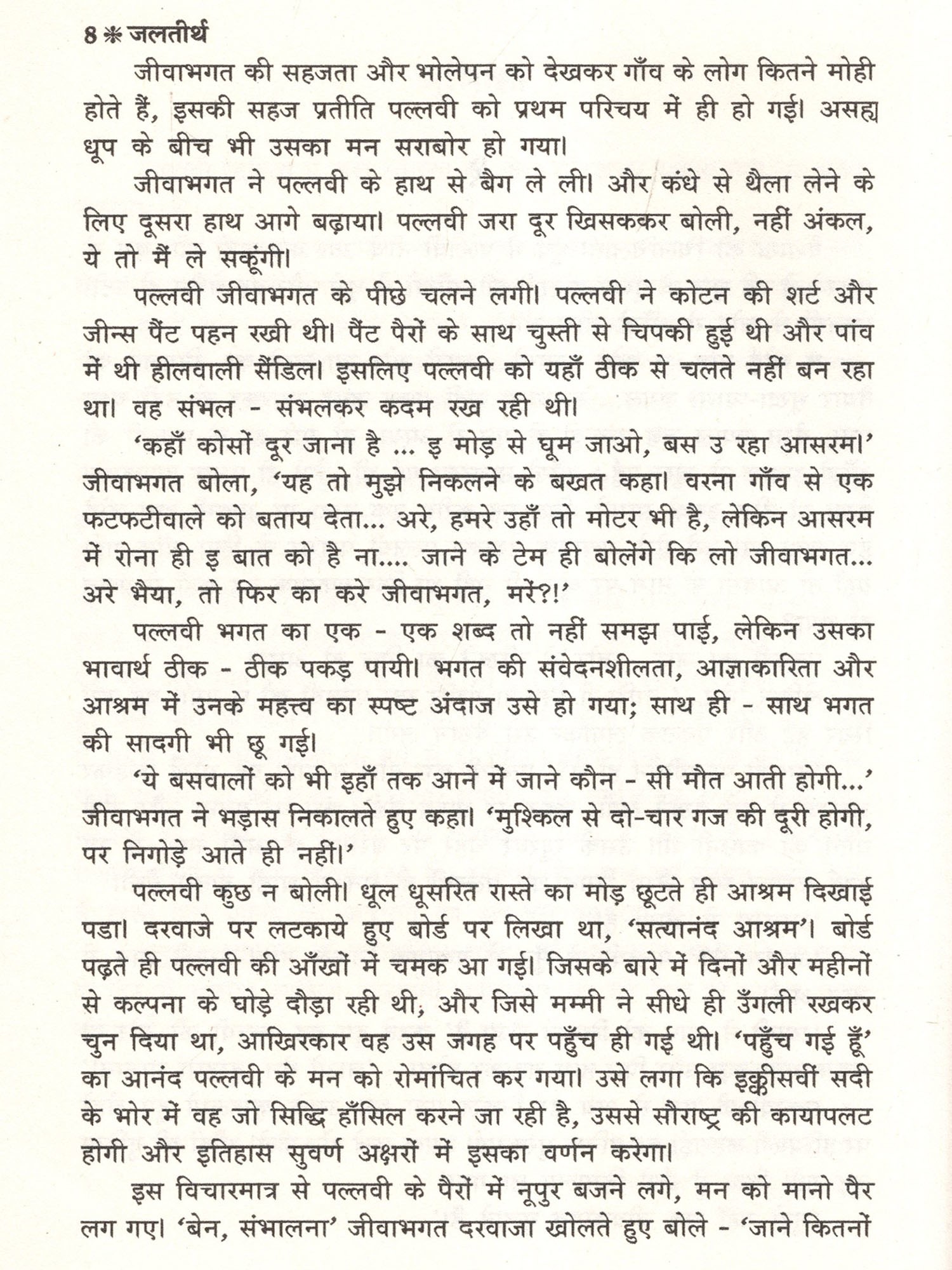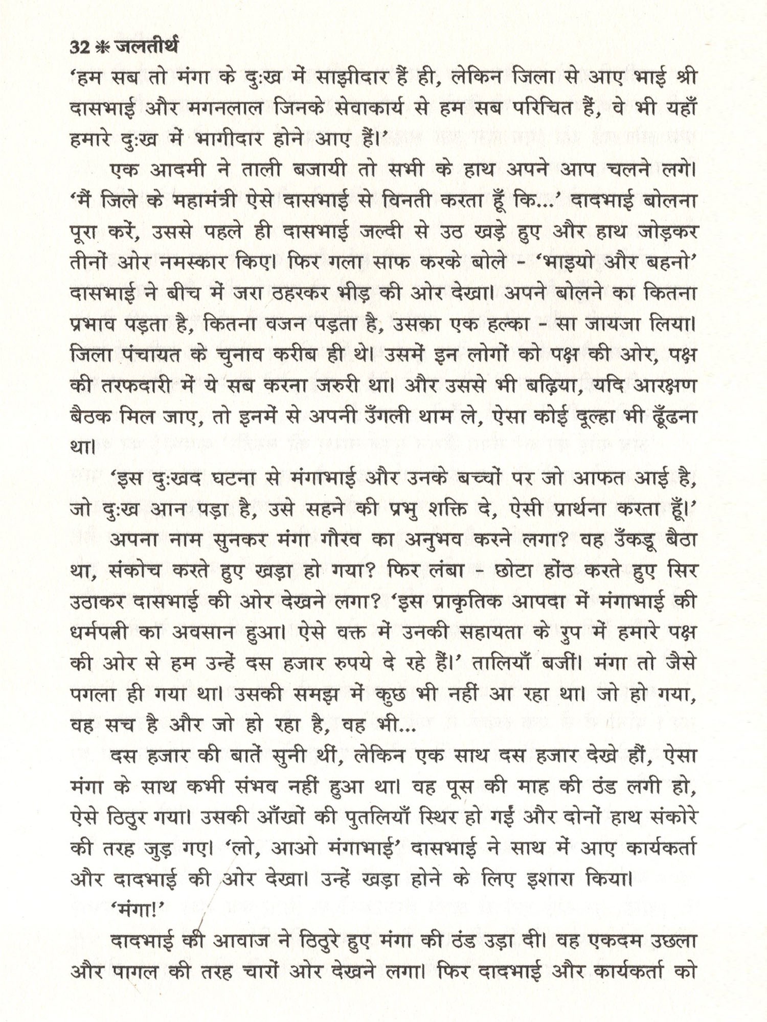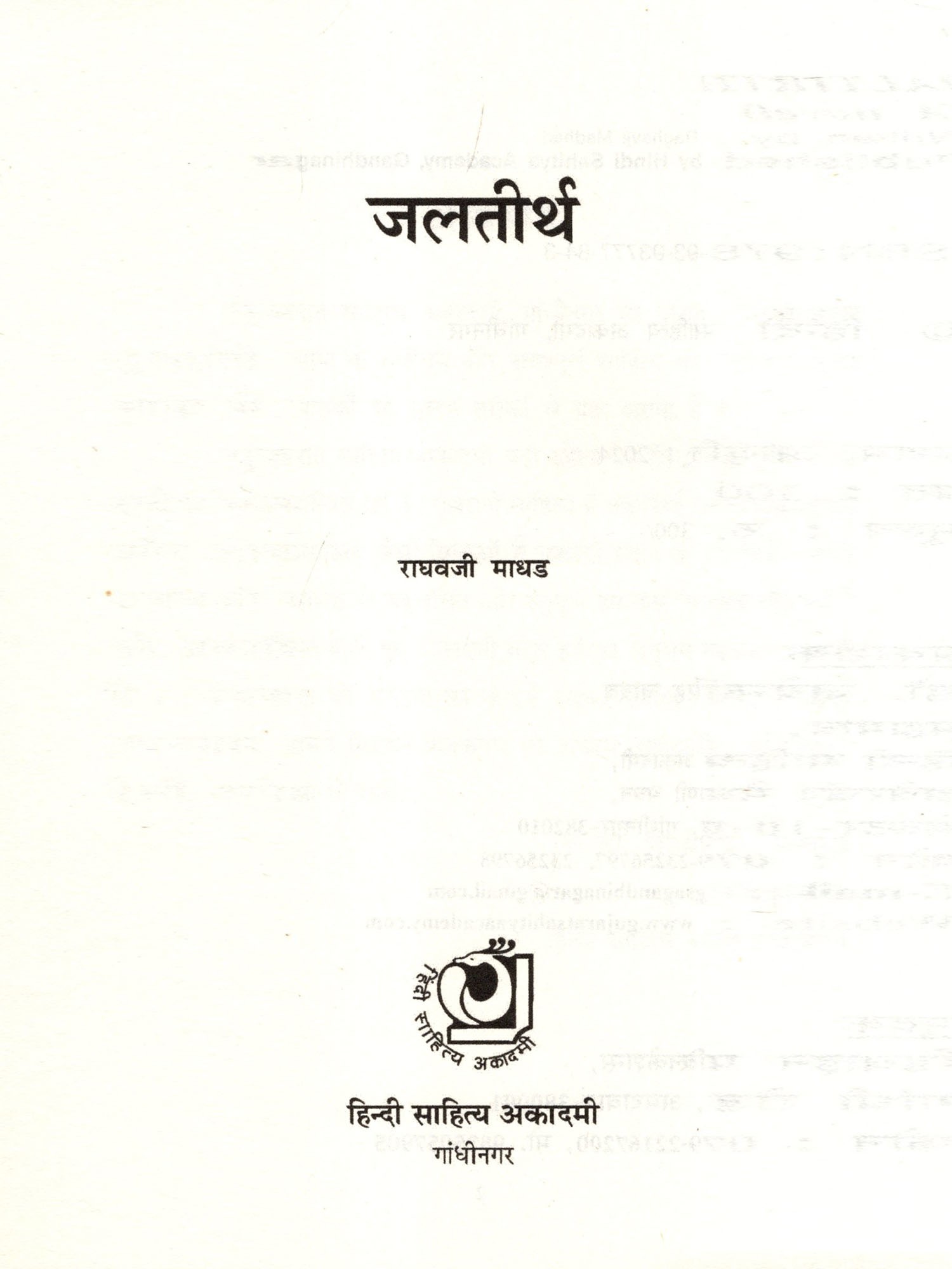 इसी उपक्रम में श्री राघवजी माधड के उपन्यास 'जलतीर्थ' को हिन्दी साहित्य अकादमी प्रकाशित कर रही है, यह गौरवपूर्ण घटना है।