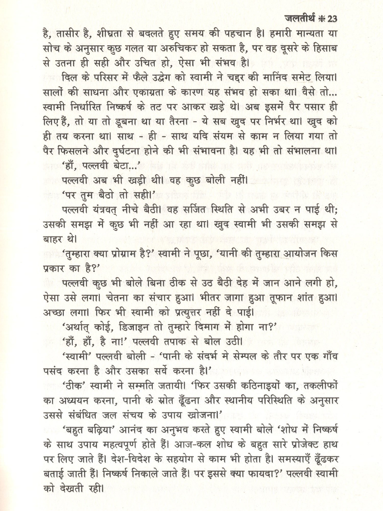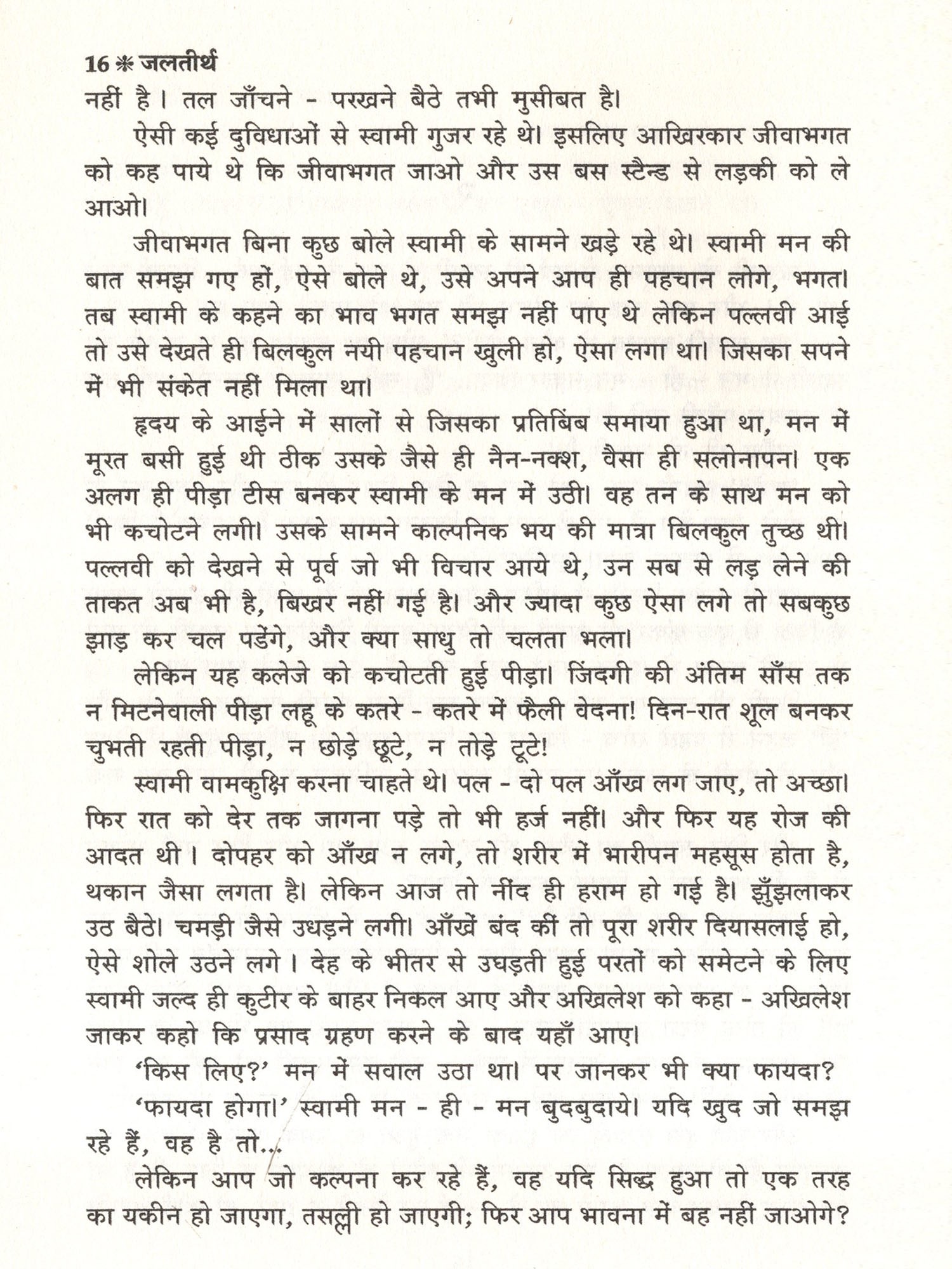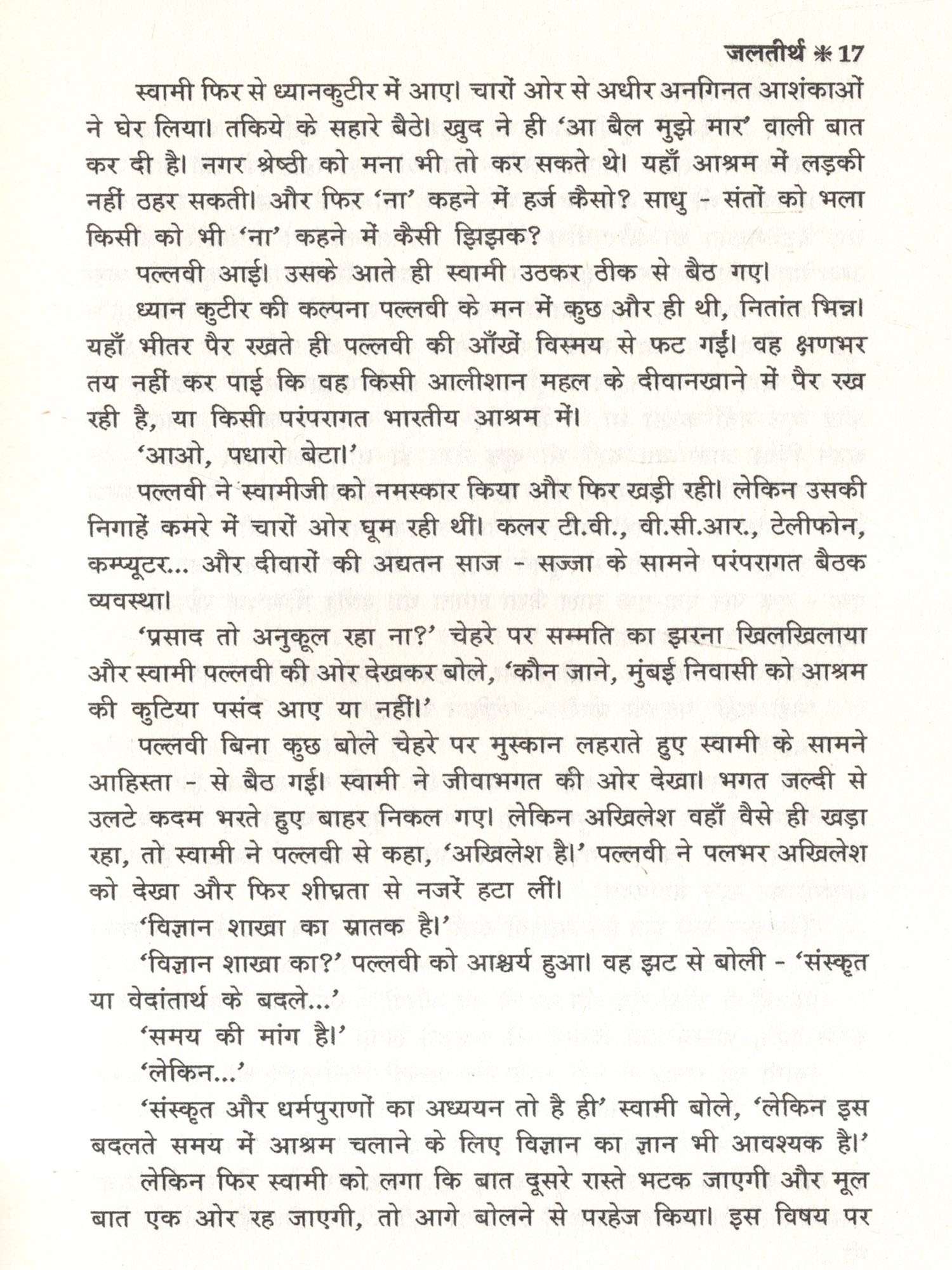 इसी उपक्रम में श्री राघवजी माधड के उपन्यास 'जलतीर्थ' को हिन्दी साहित्य अकादमी प्रकाशित कर रही है, यह गौरवपूर्ण घटना है।