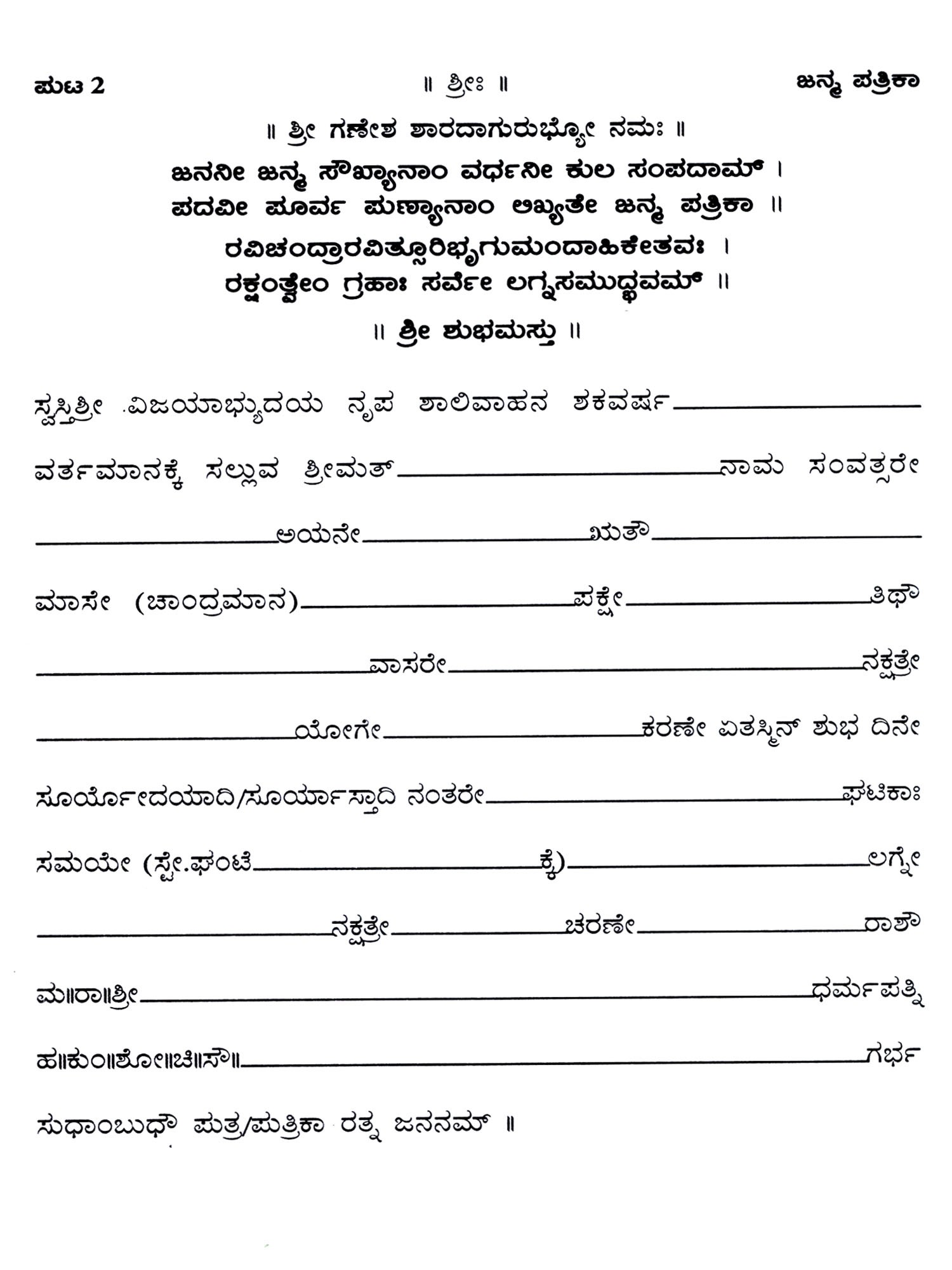 ಜನ್ಮ ಪತ್ರಿಕಾ: Janma Patrika (Kannada)