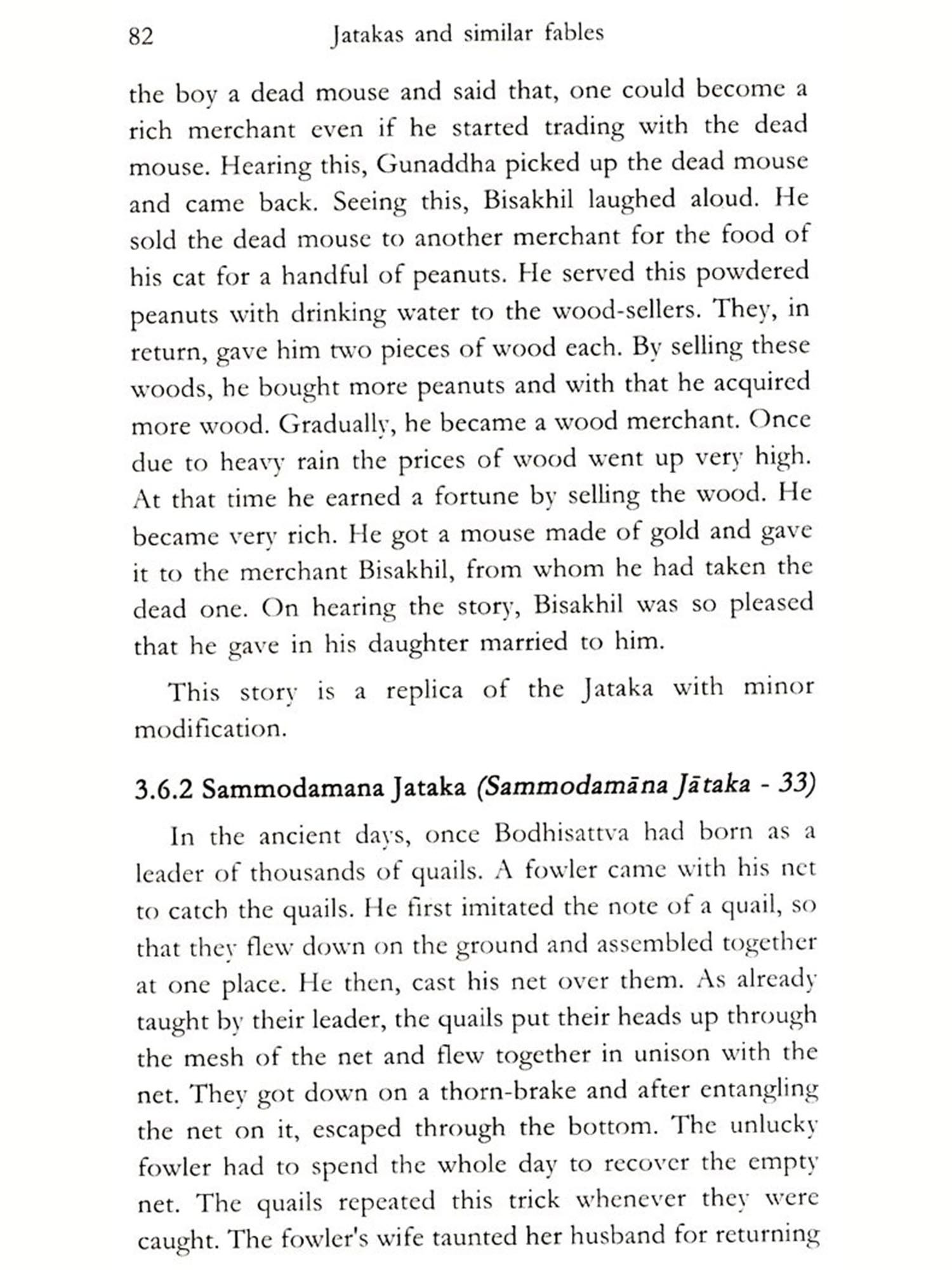 While studying the Pali literature, the Jataka stories greatly fascinated me. Later on, I could realise that this vast composition consisting of 547 Tales is only a small portion of the Buddhist canonical literature. The more and more I read these; it appeared to be a massive collection of valuable treasures. In addition to its historic, literary, moral, social and religious values, it also encompasses many Fables/Stories, which are also available in the pre and post Buddha era literatures of India and abroad.
