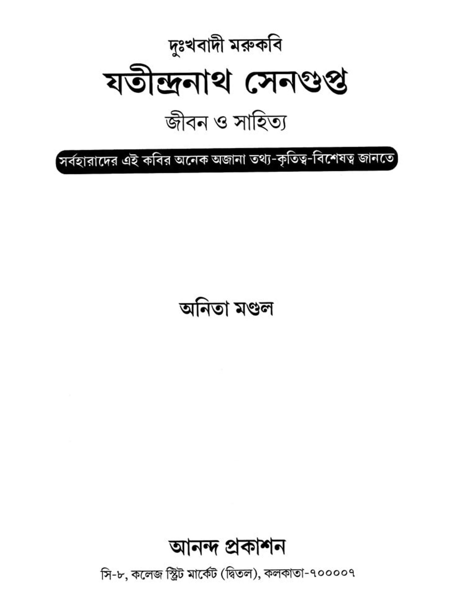 Achintyakumar Sengupta - A Monograph on Bengali