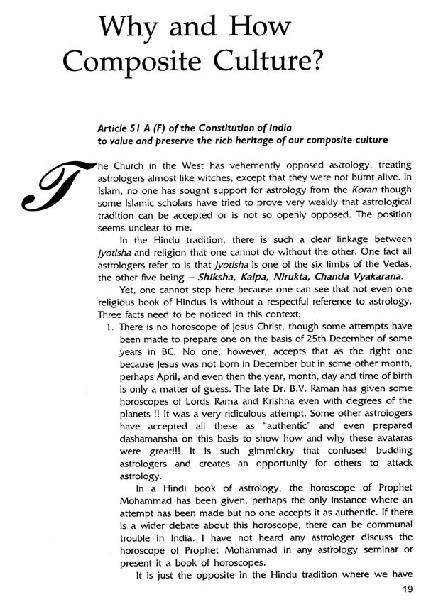 Critics of astrology are not aware that jyotisha is a high culture of Hindus with no conundrum but a captivation, which is grounded in actual experience with remarkable predictions, some very dazzling. To understand it it should be seen in stages by that jyotisha is an integral composite culture of India.