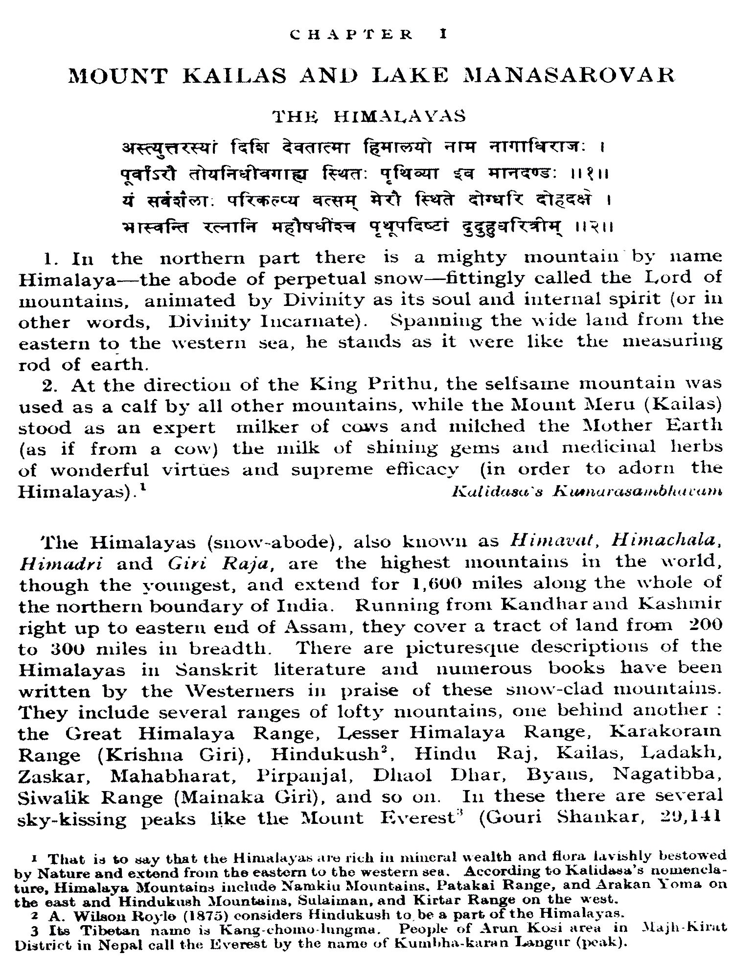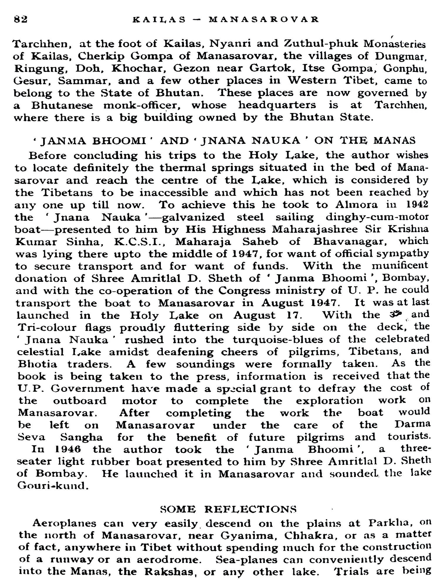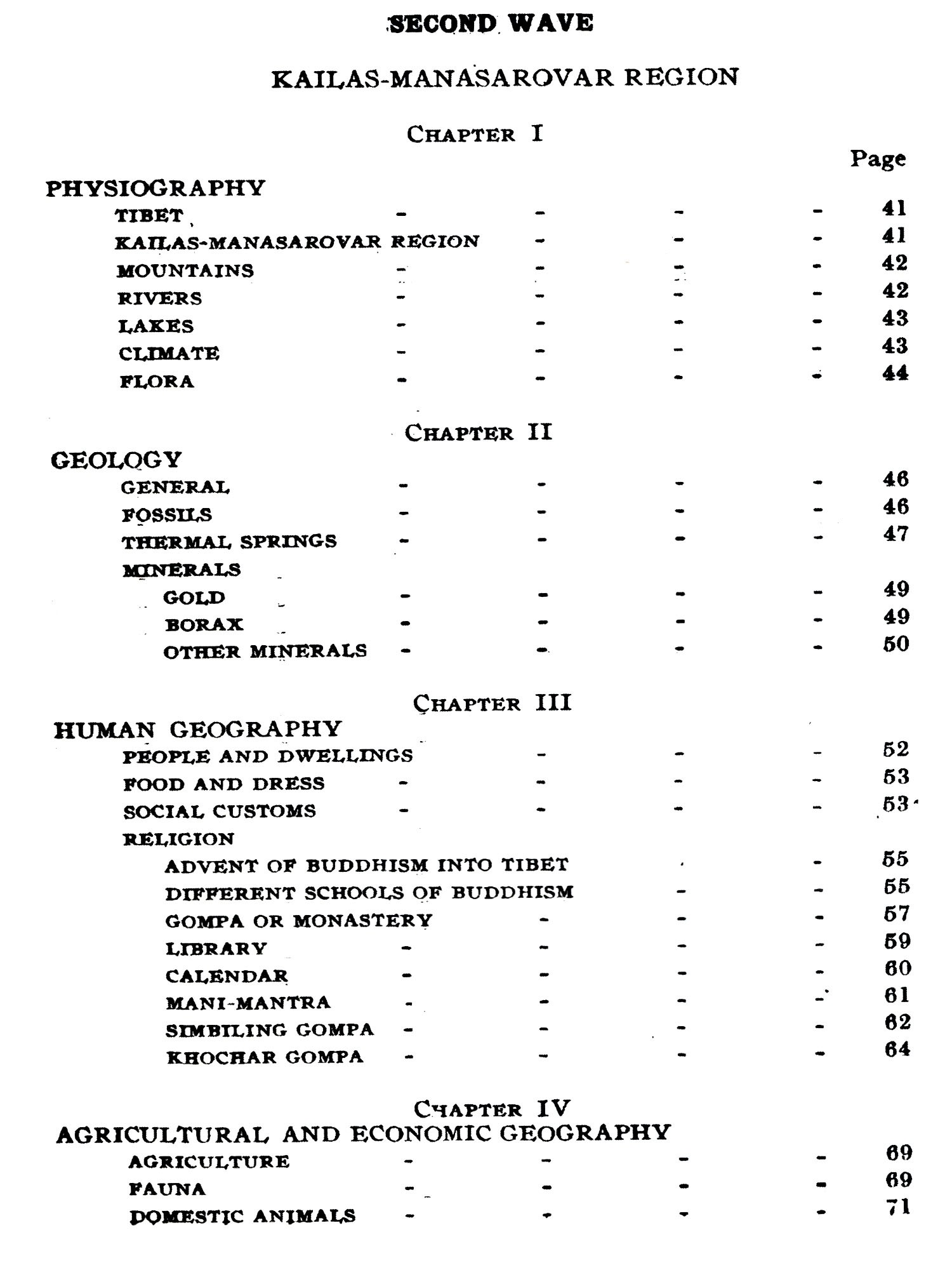 The author had the privilege of travelling in 1928, for the first time, in Western Tibet on a visit to these Holy places. He went from Srinagar (Kashmir) through Ladakh, Gartok, Gyanima Mandi, round Kailas and Manasarovar, to Taklakot, Khocharnath, Chhakra Mandi, again to Gartok, and back to Rishikesh, by the Gunla-Niti pass.