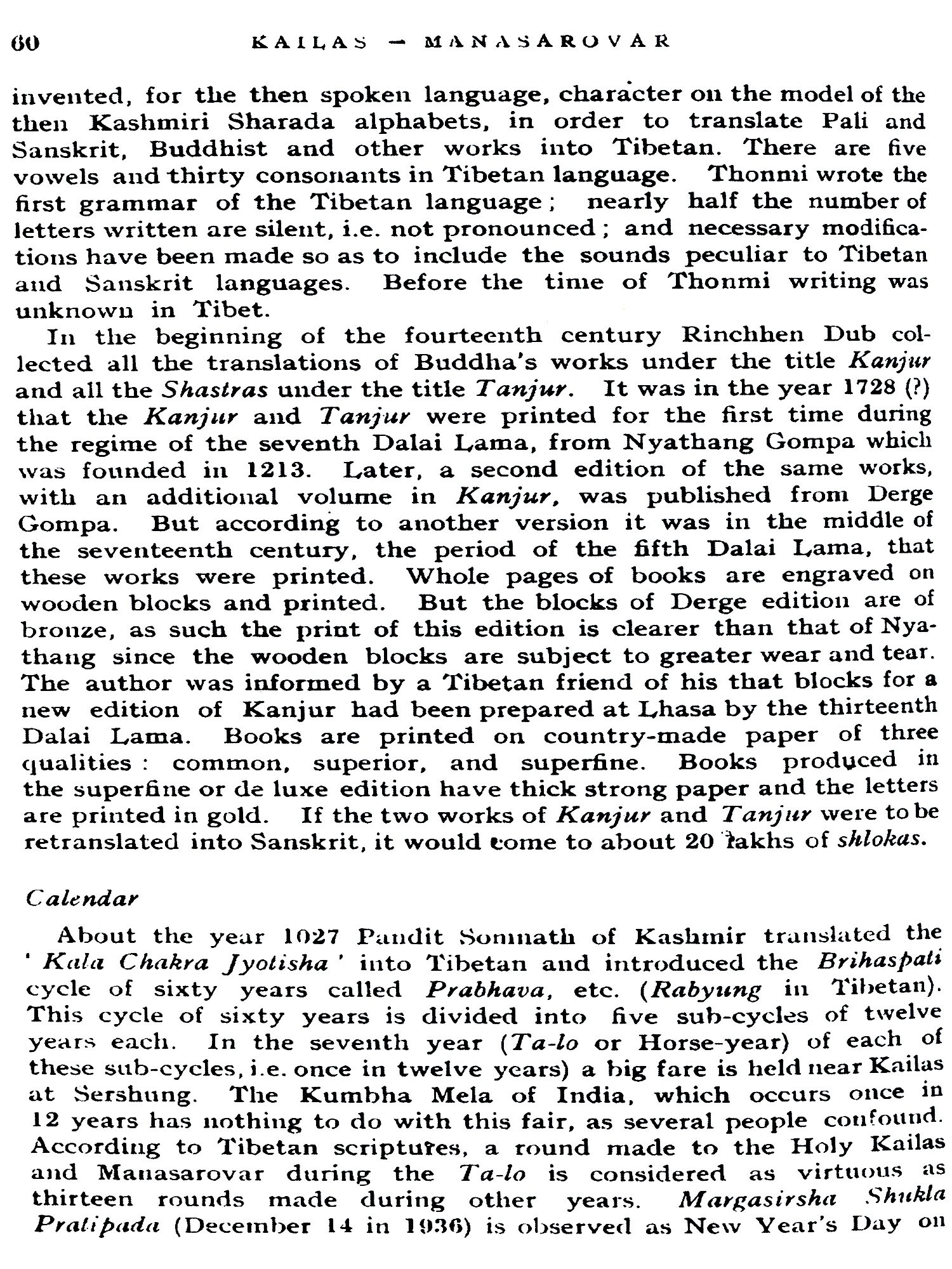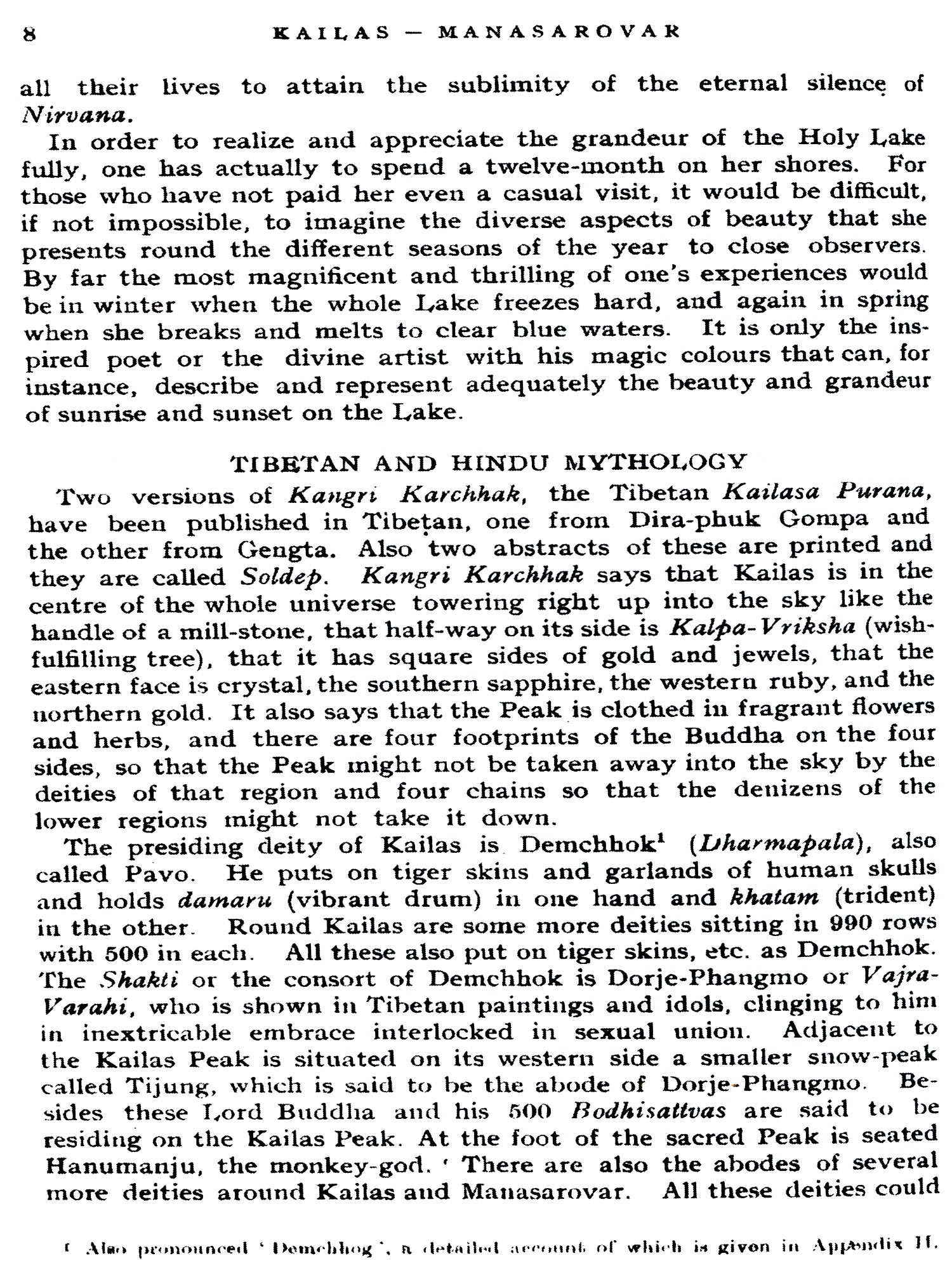 It is common knowledge that there has been no authoritative book on Kailas and Manasarovar published in English till 1938. The few guides that were available were either haphazard accounts and not systematically done, or compiled by persons who depended for their information on others, or incorporated hearsay material in their guides.