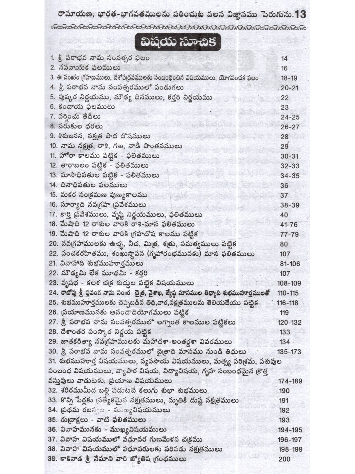 శ్రీ పరాభవ నామ సంవత్సర చాంద్రమాన గంటల పంచాంగము: Sri Parabhava Nama Samvatsara Ghadiyala Gantala Panchangam 2026-27 (Telugu)