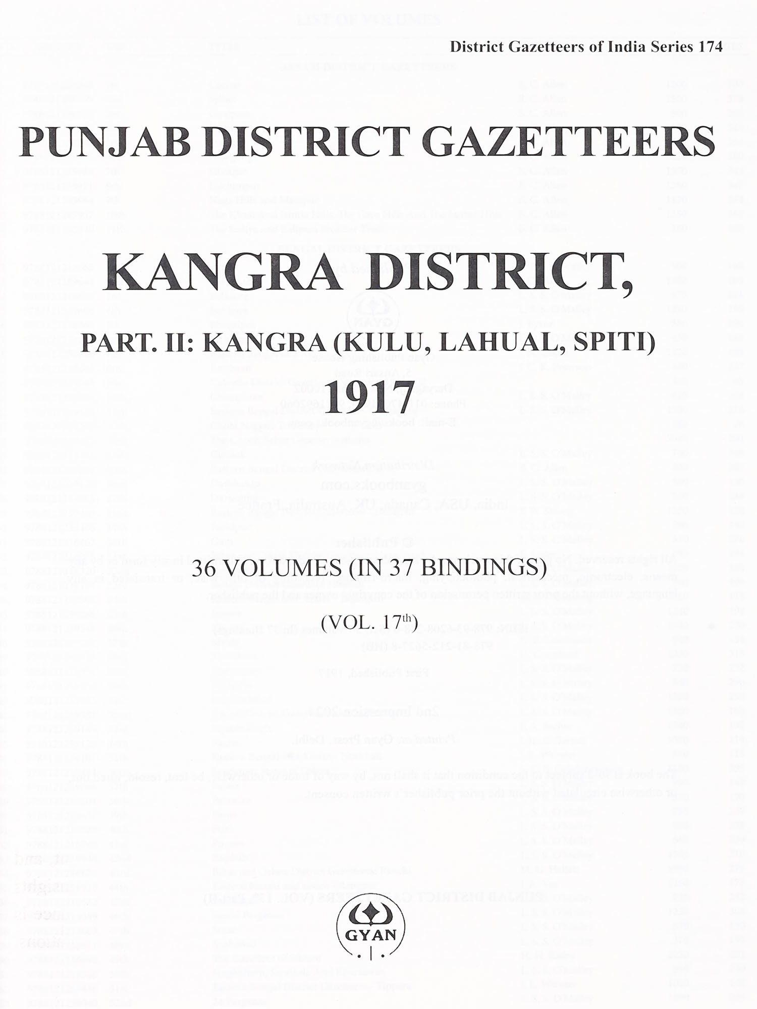 Kangra District, Part- 2: Kangra ,Kulu, Lahual, Spiti- 1917- Punjab District Gazetteers (36 Volumes in 37 Bindings Vol. 17)