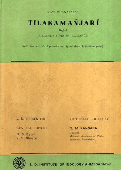 The Tilakamanjarı, composed by Dhanapala sometime during the period between 1015 A. D. and 1055 A. D. in Dhara the impirial capital of the Malava Empire of Paramara Bhojadeva, is a classical Sanskrit prose-romance (gadya-kavya) interspersed with occasional verses. Set though it is in a Jaina socio-religious background, it reflects the contem-porary social and political situation as well as the literary and cultural trends during the heydays of the Paramara Empire of Malwa. A critical study of the work and its detailed literary evaluation in the setting of a comp.chensive contemporary perspective of the life and thought of the times was taken up by me for my doctoral desertation in 1966. Till then, it had hardly attracted the serious attention of Sanskrit scholars for a fully detailed independent study. In the course of my studies. I used to meet veteran scholars like Muni Shri Jinavijayaji, Muni Shri Punyavijayaji, Professor Rasiklal C. Parikh, Professor Dalsukhbhai Malavania, Dr. Harivallabh Bhayani, Dr. Hariprasad G. Shastri, and others to discuss various aspects of my studies. It was during one of our meetings with Professor Parikh that the idea of compiling the Critical Text of the Tilakamanjarı crystallised when the revered scholar enquired of me as to the basic text on which I was going to rely upon for my critical study.