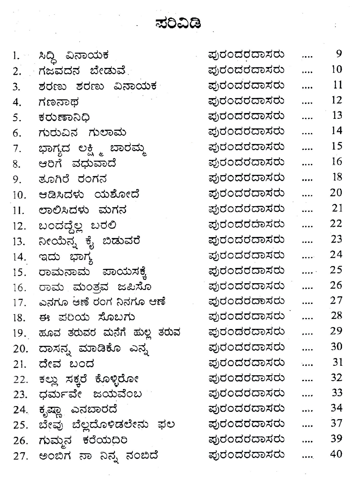 ಶ್ರೀ ಪುರಂದರದಾಸರ ಜನಪ್ರಿಯ ಕೀರ್ತನೆಗಳು: Sri Purandaradasara Janapriya Keertanegalu (Kannada)