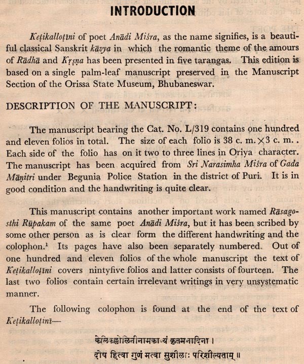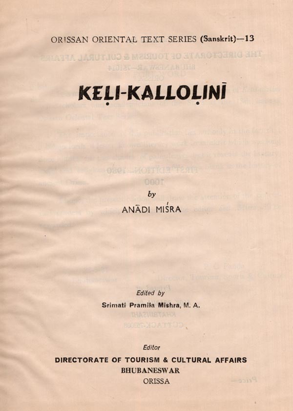 Keli-Kallolini: Orissan Oriental Text Series (Sanskrit)- 13 (An Old and Rare Book)