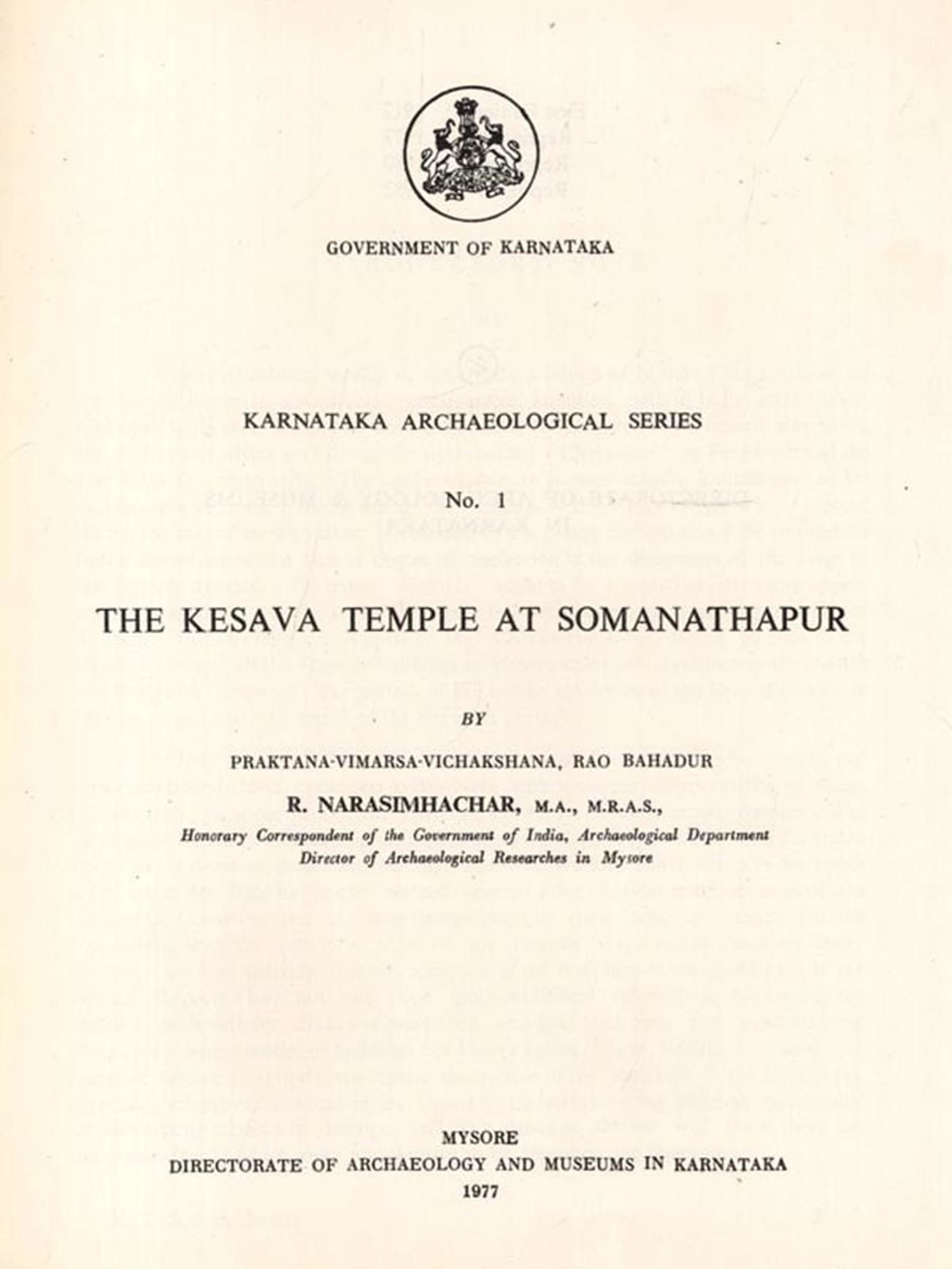 The Kesava Temple at Somanathapur (An Old and Rare Book)