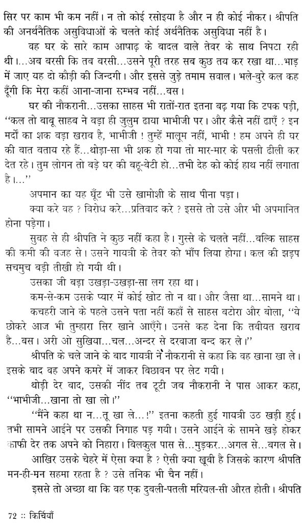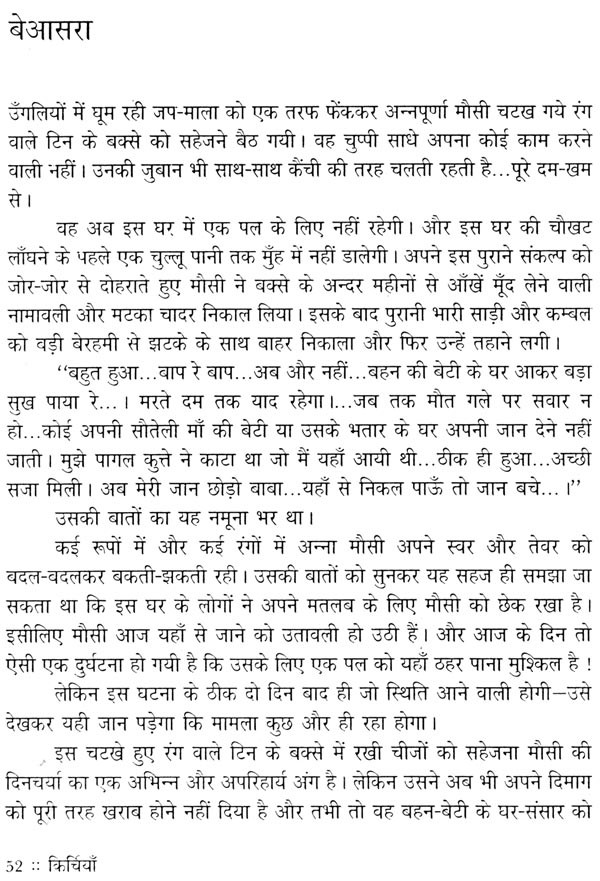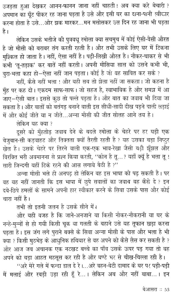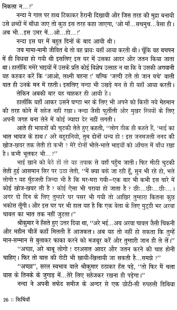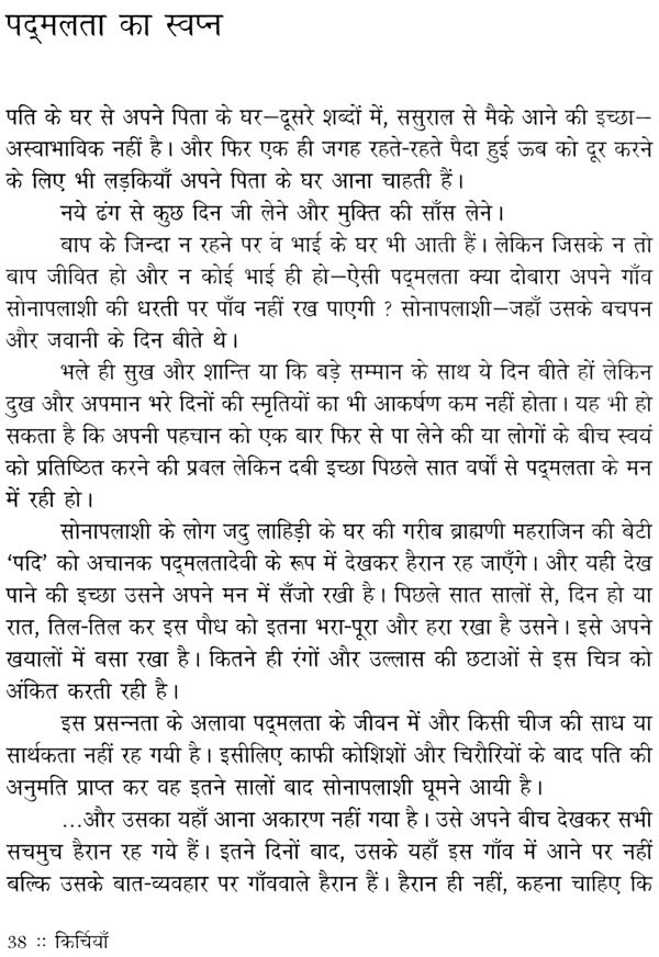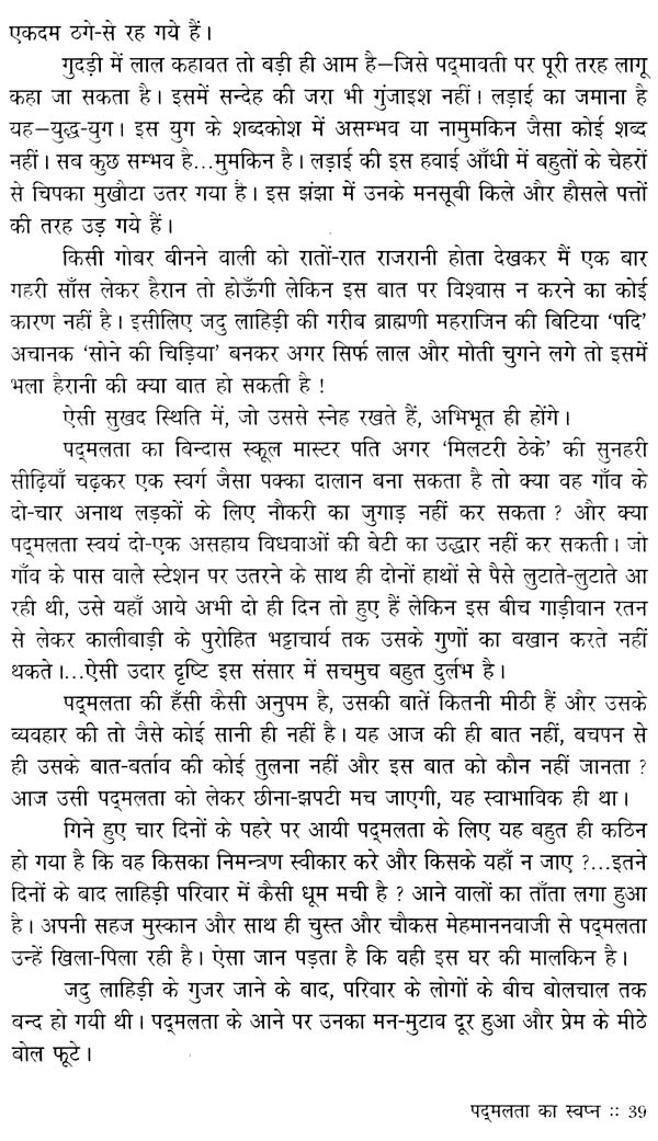 आशापूर्णा की रचनाओं में ऐसी भी अनेकानेक लड़कियाँ, युवतियाँ, महिलाएँ और वृद्धाएँ हैं जो समाज में निर्विकार भाव से उपस्थित हैं... अपनी छोटी-सी गृहस्थी में सुखी या दुखी। एकदम सामान्य या तुच्छ दीख पड़ने वाली समस्याएँ या घटनाएँ, पात्र और परिस्थितियों के सहज या जटिल तालमेल से जीवन को नये ढंग से परिभाषित करती हैं। इन गुत्थियों को हर समर्थ कहानीकार सुलझाता है या उसे नया सन्दर्भ प्रदान करता है। लेकिन आशापूर्णा की विशेषता यह है कि वे इसके लिए अलग से कोई नाटकीय प्रयास नहीं करतीं। पात्रों के क्षण विशेष की ऊहा को, मर्म को या उनके उद्दीप्त क्षण को ही वे एकदम से पकड़ लेती हैं और उसे नया अर्थ-गौरव देती हैं। जीवन अपने रचाव में एक अलिखित, अन्तहीन और अयाचित नाटक ही है। हमारे सारे सम्बन्ध किसी संयोग से निर्धारित हैं पर भूमिका अनिश्चित अस्पष्ट और अदृष्ट। ऐसे पात्रों की नामालूम सी जिन्दगी और बेमतलब बेवजह दीख पड़ने वाले पात्रों को सार्थकता देती हई उनकी कहानियाँ जब यकायक सवाल बनकर कोंचने लगती हैं तो वे हमारे अवचेतन को ही नहीं झिंझोडतीं हमारे समाज को भी आन्दोलित करती हैं। ऐसी ही कहानियों ने बंगाल के अनगिनत पाठकों को पिछली आधी शताब्दी से भी अधिक समय से चमत्कृत कर रखा है।