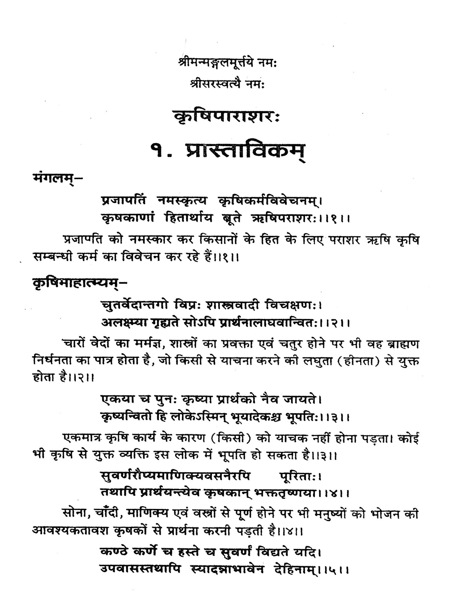 "भारत कृषि प्रधान देश है" इस उक्ति से प्रायः सभी जन चिरपरिचित हैं, किन्तु भारत में सुविचारित "कृषिशास्त्र" है इससे सम्भवतः अल्प लोग ही परिचित होंगे। यह निर्विवाद सत्य है कि भारत ने कृषि कर्म को महत्व देकर अधिकाधिक अन्न उत्पन्न करने की प्रक्रिया को विकसित किया तथा अन्न के महत्व को प्रतिपादित किया। महर्षि पराशर ने तो स्पष्ट शब्दों में कहा कि किसी के हाथ-कान-गले आदि अंगों में स्वर्ण आभूषण भले ही पड़े हों किन्तु अन्न के अभाव में उन्हें भी उपवास ही करना पड़ेगा। स्वर्ण रत्न किसी की क्षुधा शान्त करने में सक्षम नहीं है। क्षुधा की शान्ति एक मात्र अत्र से ही होती है।' अतः अन्न को उपजाने वाले कार्य अर्थात् कृषि कर्म को ही करना आवश्यक है। यह सार्वकालिक एवं सार्वभौम सत्य है। किसी भी भूभाग में अन्न की उपेक्षा नहीं की गई है। भारत ने तो अन्न को उपजाने के साथ साथ इसके उपयोग पर भी अनुसन्धान किया तथा विभिन्न स्वाद के व्यञ्जनों का भी आविष्कार किया। भारतीय श्रद्धालुजन अपने इष्टदेव को छप्पन प्रकार के व्यञ्जन अर्पित कर आनन्दित होते हैं। इतना अधिक स्वादुपरक व्यञ्जनों का निर्माण भारत से बाहर दुर्लभ ही है। भारतीय जनमानस की शाकाहारी प्रवृत्ति अन्नों के उत्पादन एवं उनके विविध व्यञ्जनों के निर्माण की प्रेरक रही है। जहाँ अन्न के उपयोग एवं व्यवहार की महत्ता होती है वहाँ उसके अधिकाधिक उत्पादन एवं संरक्षण सम्बन्धी चिन्ता स्वाभाविक है।