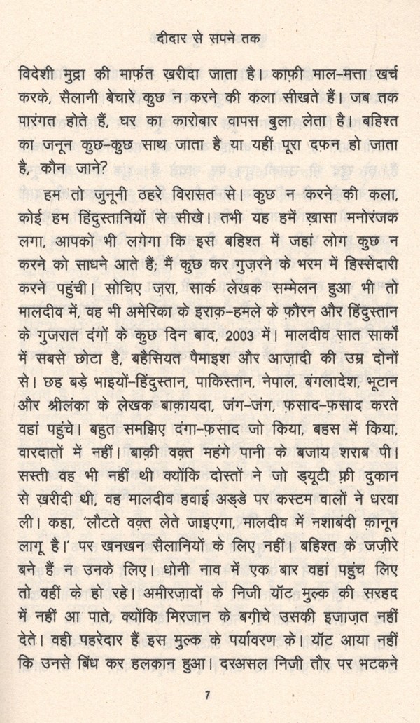 कहते हैं, जहां न जाए रवि, वहां जाए कवि। ऐसा ही प्रयास किया है लेखिका ने, लेकिन कल्पना के सहारे नहीं, सशरीर। ये रोमांचक विवरण सहसा ही कभी सूरीनाम, कभी काजीरंगा तो कभी केरल के वर्षावनों, अभयारण्यों में ले जाता है तो कभी समंदर की नीली लहरें आकर पांव भिगो जाती हैं, अगले ही पल हिरोशिमा की त्रासदी देख कर आंखें नम हो जाती हैं।