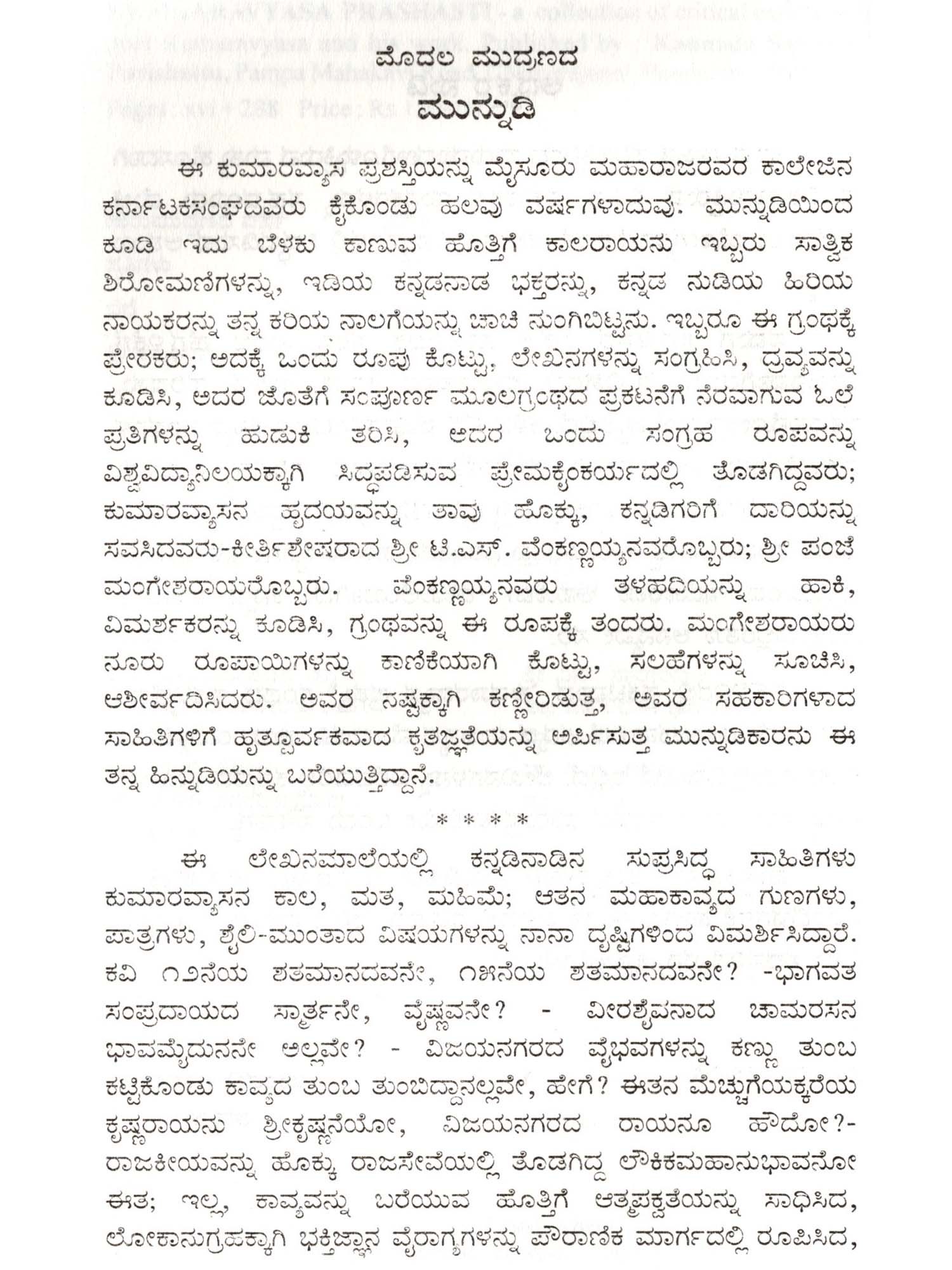 ಕುಮಾರವ್ಯಾಸ ಪ್ರಶಸ್ತಿ- Kumara Vyasa Prashasti- A Collection of Critical Essays on Poet Kumaravyasa an his Work (Kannada)