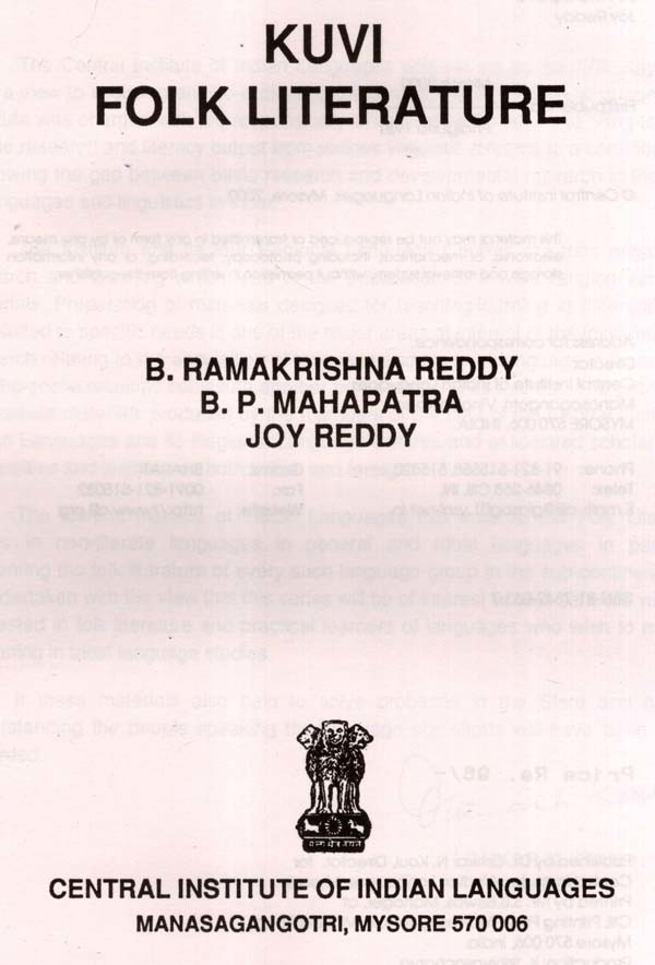 The Central Institute of Indian Languages has initiated the Folk Literature series in non-literate languages in general and tribal languages in particular presenting the folk literature of every such language group in the sub-continent. This is undertaken with the view that this series will be of interest to both scholars who are interested in folk literature and practical learners of languages who wish to make a beginning in tribal language studies.