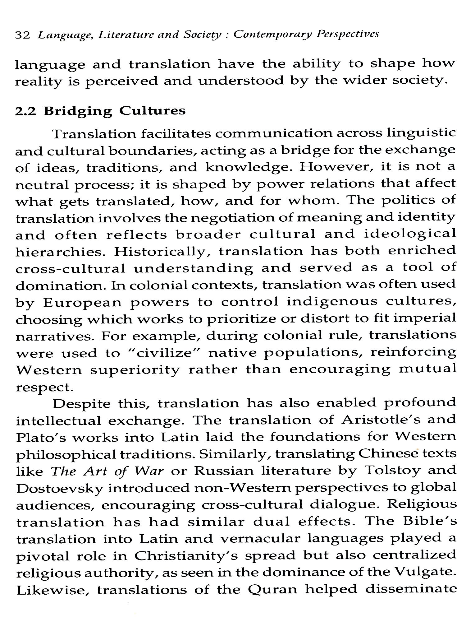 The intellectual history, the history of epistemological order, the archaeology of knowledge, the history of ideas and the great chain of being have conspicuously articulated that the process and the reality of the formation of knowledge have been dialectical as they include the realities of 'Thesis', 'Antithesis and 'Synthesis'. G. W. F. Hegel's philosophy of 'Dialectical Idealism' and Immanuel Kant's ideas of 'Critique' and 'Antinomy' have explained that dialectics is a dynamic process of intellectual exploration that seeks to move beyond simple dualities to reach a richer, more nuanced understanding of reality. In the process of developing a more nuanced understanding of reality or truth, the emergence of antithesis challenges the certain foundations of the thesis. Thus, the process of negation and progression continues to add new dimensions to the existing order of knowledge and determine the contemporary perspectives on the epistemology, metaphysics, aesthetics, ontology, phenomenology and hermeneutics of knowledge and realities. The present anthology is the fructification of the dialectical process that allows some fertile passages where some relatively more challenging and intellectually, theoretically and philosophically complex critical thoughts, concepts and ideas may emerge to encapsulate the changing realities of the socio-pragmatic realities. The anthology consists of seventeen well researched critical papers covering three major dimensions of human existence; language, literature and society.