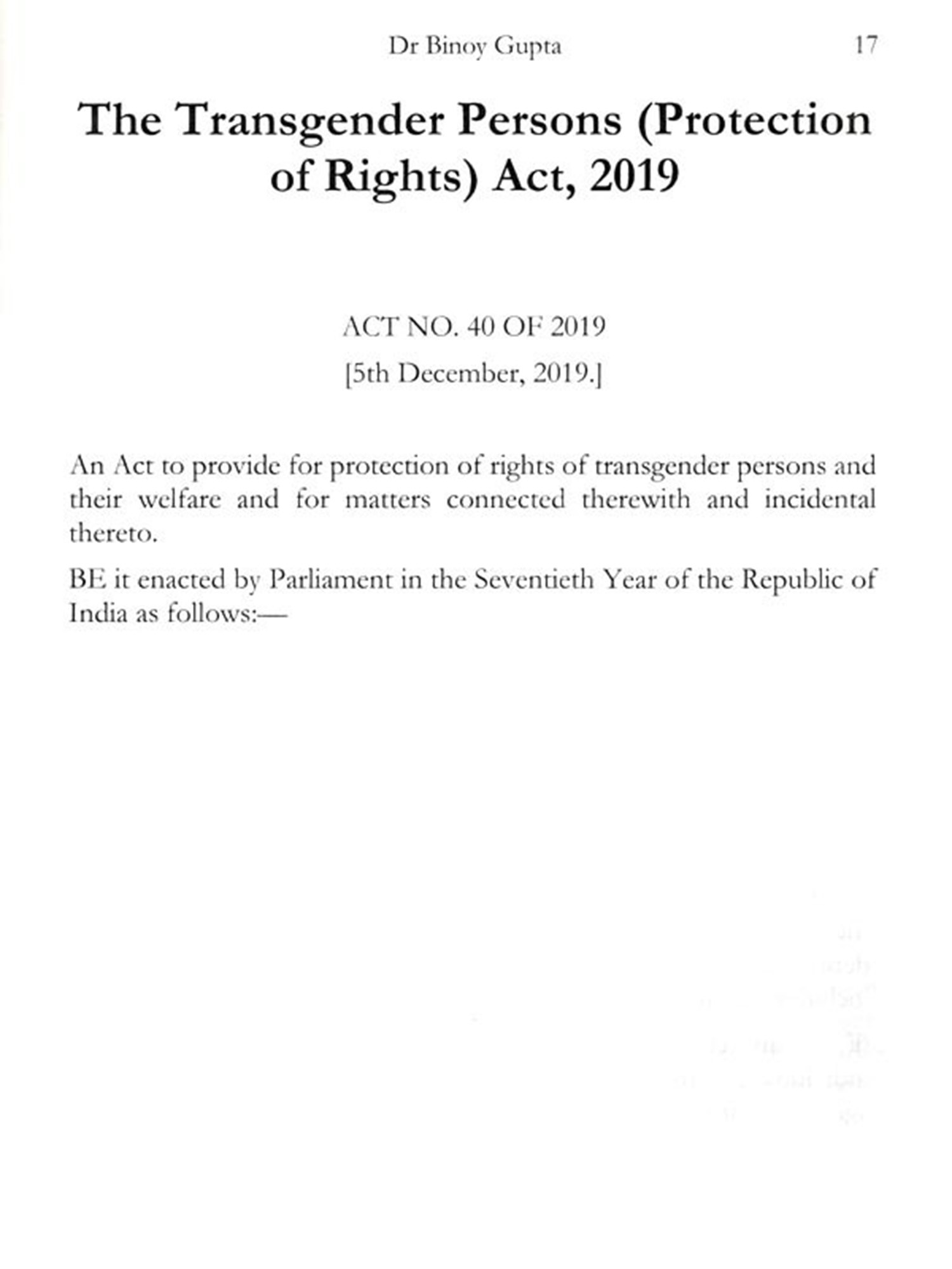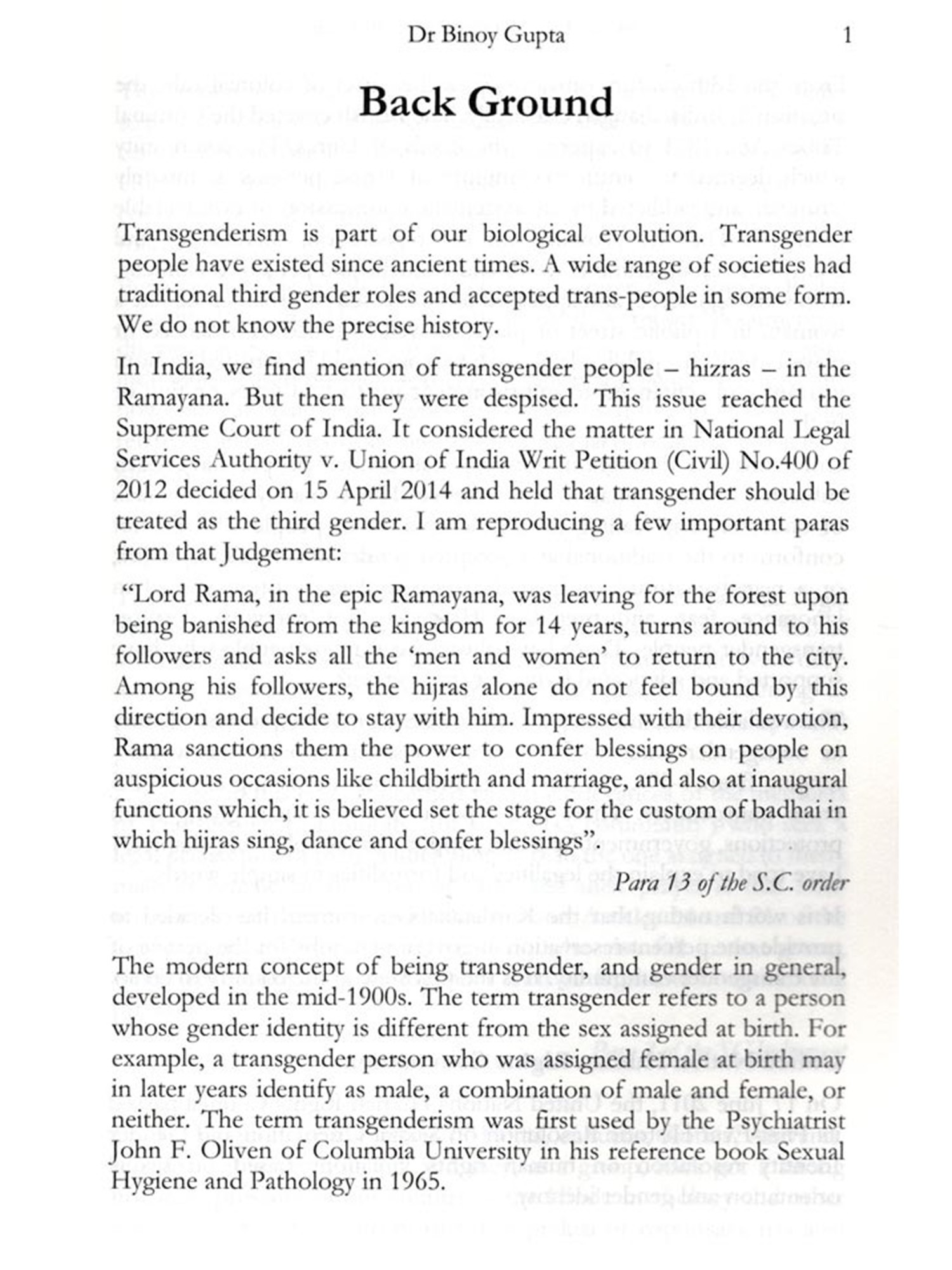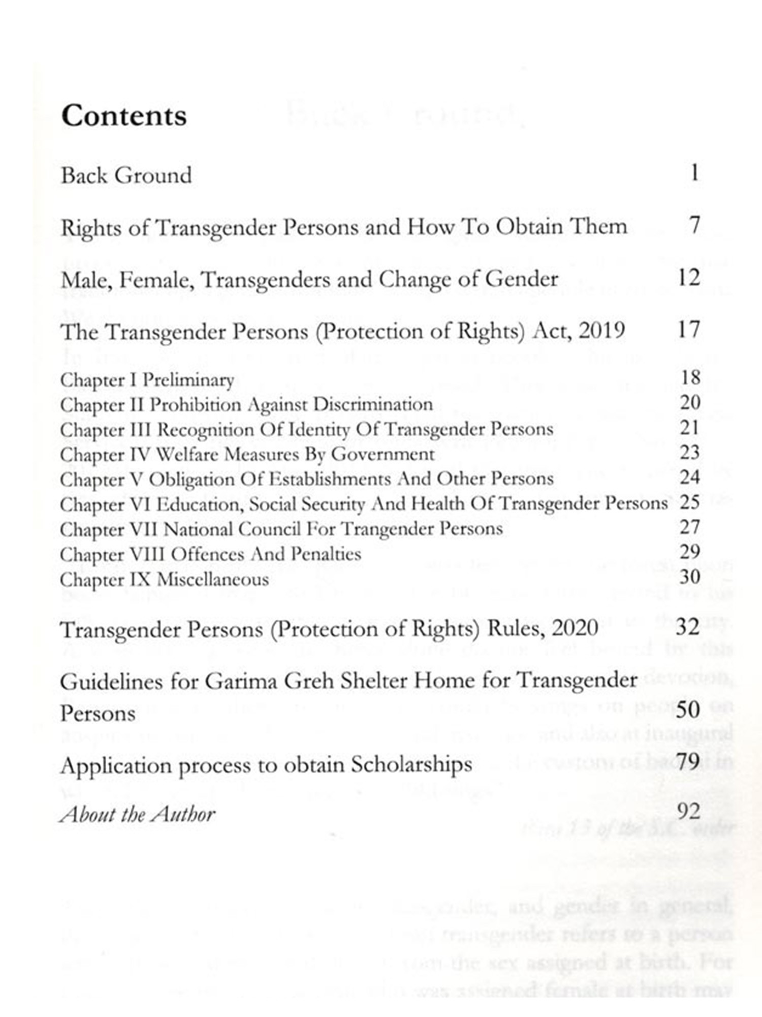 In this book, I have attempted to provide a brief history of transgenderism and information about the laws and rights of transgender people in India. I have provided detailed information how transgender people can obtain their certificate and identity cards (transgender card) and avail of the benefits due to them.