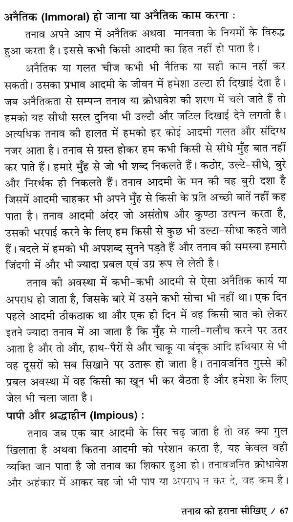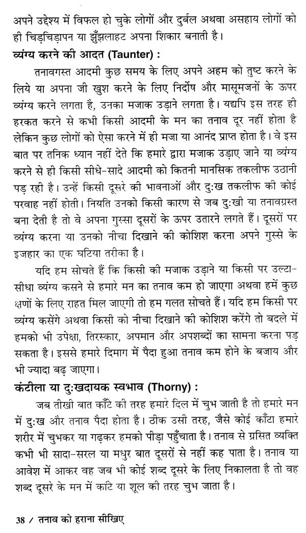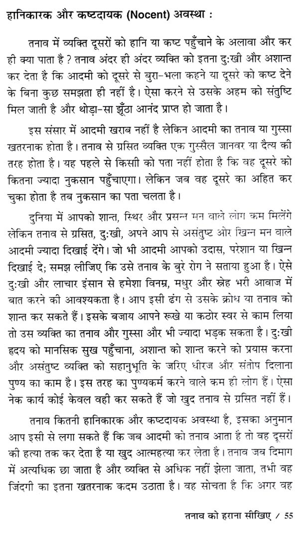 तनाव को हराने के विभिन्न तरीके सुझाने में मैं कितना सफल हो पाया हूँ, इसका फैसला तो पाठक इस पुस्तक को पढ़ने के बाद ही कर सकते हैं। विषय को रोचक और सुगम्य बनाने के लिए मैंने इस किताब में कार्टून चित्रों का भी प्रयोग किया है, जो पाठकों को पसंद आएँगे।