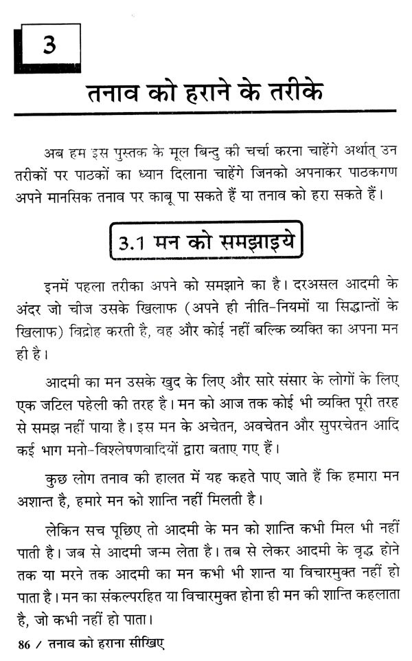'तनाव' विषय पर लिखी गयी यह मेरी तीसरी पुस्तक है। इस किताब में तनाव को हराने या उससे छुटकारा पाने के जो उपाय दिए गए हैं, वे शेप दोनों पुस्तकों से भिन्न हैं। दरअसल आज का मानव कोलाहल के माहौल के बीच अपने आपको तनाव और व्याकुलता से इतना घिरा हुआ पाता है कि 'तनाव' जैसे शब्द का अर्थ समझना उसके लिए मामूली-सी बात हो गयी है।